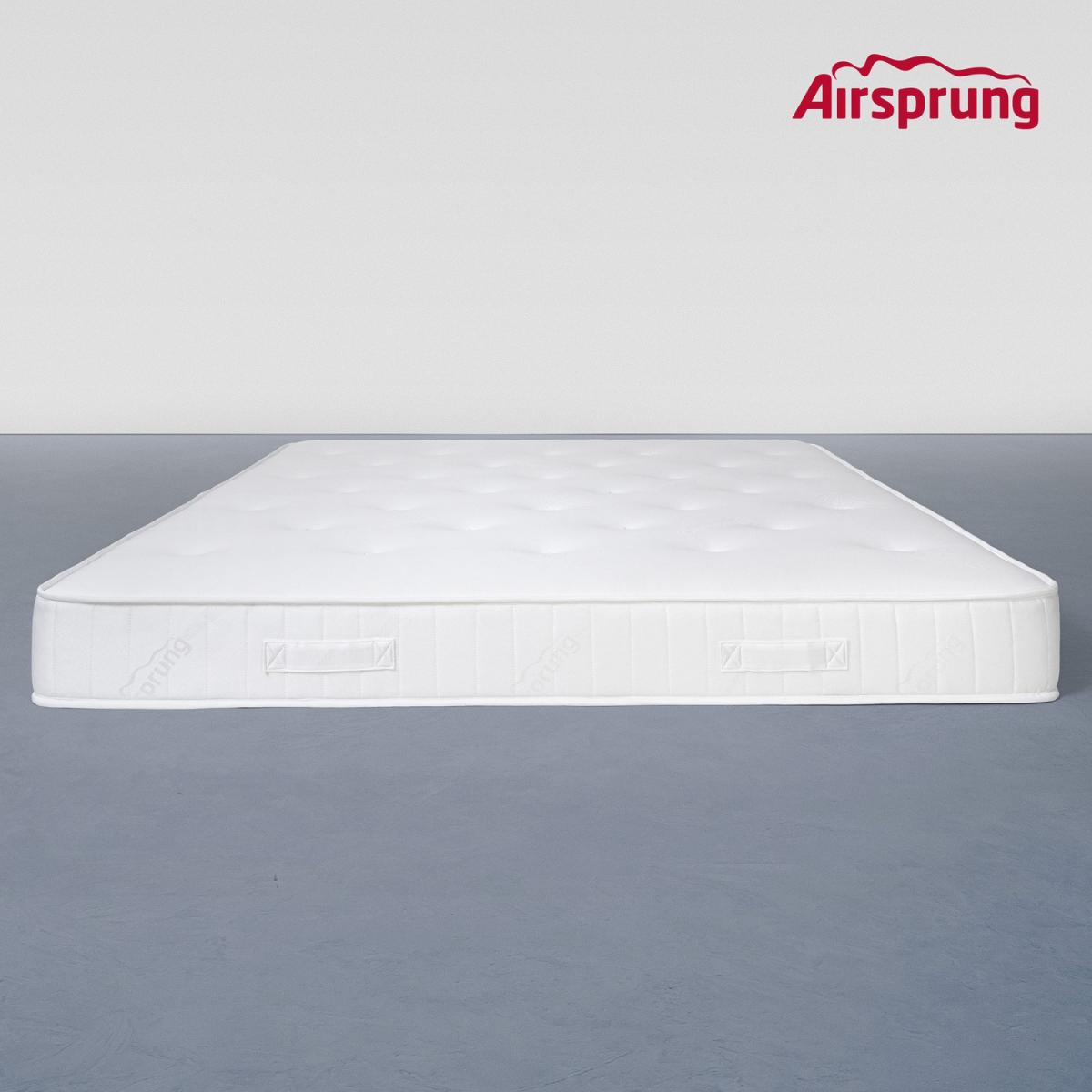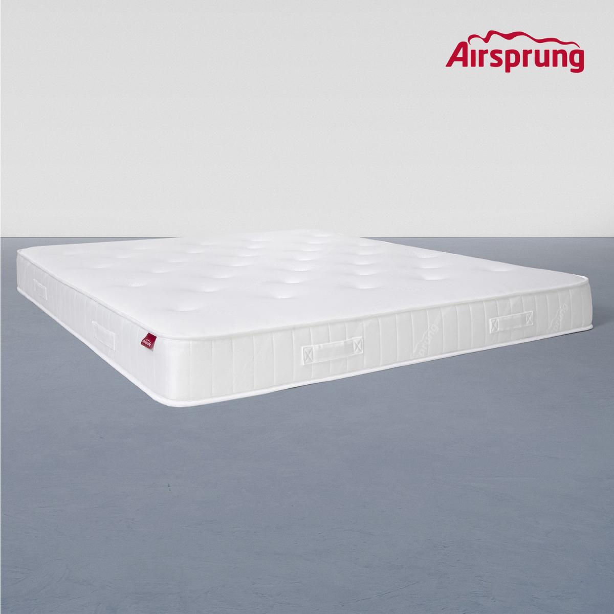 Dimensions H21 x W180 x D200cm Features. Comfort layers Contains recycled materials. Mattress Core Airsprung Supercoil® springs. Mattress Firmness Ultra firm feel. Mattress Care Non turn. Sleeping Surface Soft feel. Rotate it occasionally as it preserves its longevitySoft feel knit sleeping surface with damask borders This mattress is designed to be affordable - and made to leading brand Airsprung standard. So you’ll sleep comfortably on a quilted soft knit surface designed with our simple straight-line pattern which gives depth in appearance. Ultra firm feel the heart of this mattress is our tough Airsprung Supercoil® spring system providing secure support throughout. It’s ideal for sleepers who either need - or like - that extra little bit of back support. We’ve selected soft sumptuous fillings for comfy support. 80% recycled plastic - which is great for the environment. This ULTRA FIRM model is non turn for extra convenience - the stitched-in handles are for easy handling. Do rotate it occasionally as it preserves its longevity. DELIVERY RESTRICTIONS . Please note we are only able to ship Airsprung to UK Mainland postcodes. We are unable to ship to Ireland Northern Ireland Scottish Highland or the Channel Islands. .