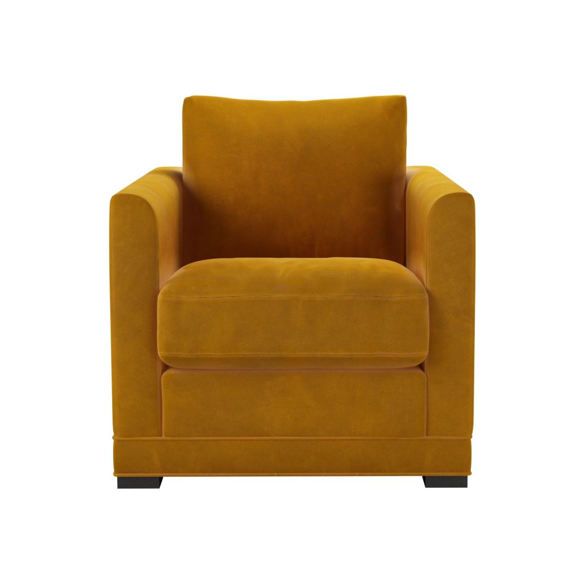 I love this armchair for its bold amber hue and plush Smart Velvet finish - it instantly adds warmth and luxury to any space. It works particularly well in eclectic, modern, or mid-century interiors where a statement piece is desired. To style it effectively, consider pairing it with neutral-toned cushions or throws to balance its richness, or contrast it with darker accessories for a more dramatic look. Practical tips include placing it in a cosy reading nook or corner to maximise its comfort, and keeping its sleek lines unobstructed for a clean, polished aesthetic. It’s versatile enough to work in living rooms, bedrooms, or even office spaces that aim for a cosy yet stylish vibe.