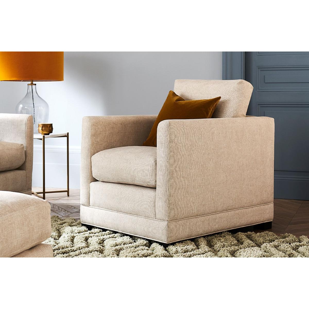 I love this armchair because of its versatile Biscotti brushstroke finish, which adds a subtle texture and warmth to any room. It works particularly well in neutral or muted colour schemes, pairing nicely with both contemporary and traditional interiors. For styling, consider adding a cosy throw or patterned cushion to bring in layers of texture and personality. It’s a practical choice for living rooms or reading nooks, and its compact size makes it perfect for creating inviting, functional seating without overwhelming the space. Keep accessories simple to let the colour and fabric texture shine.