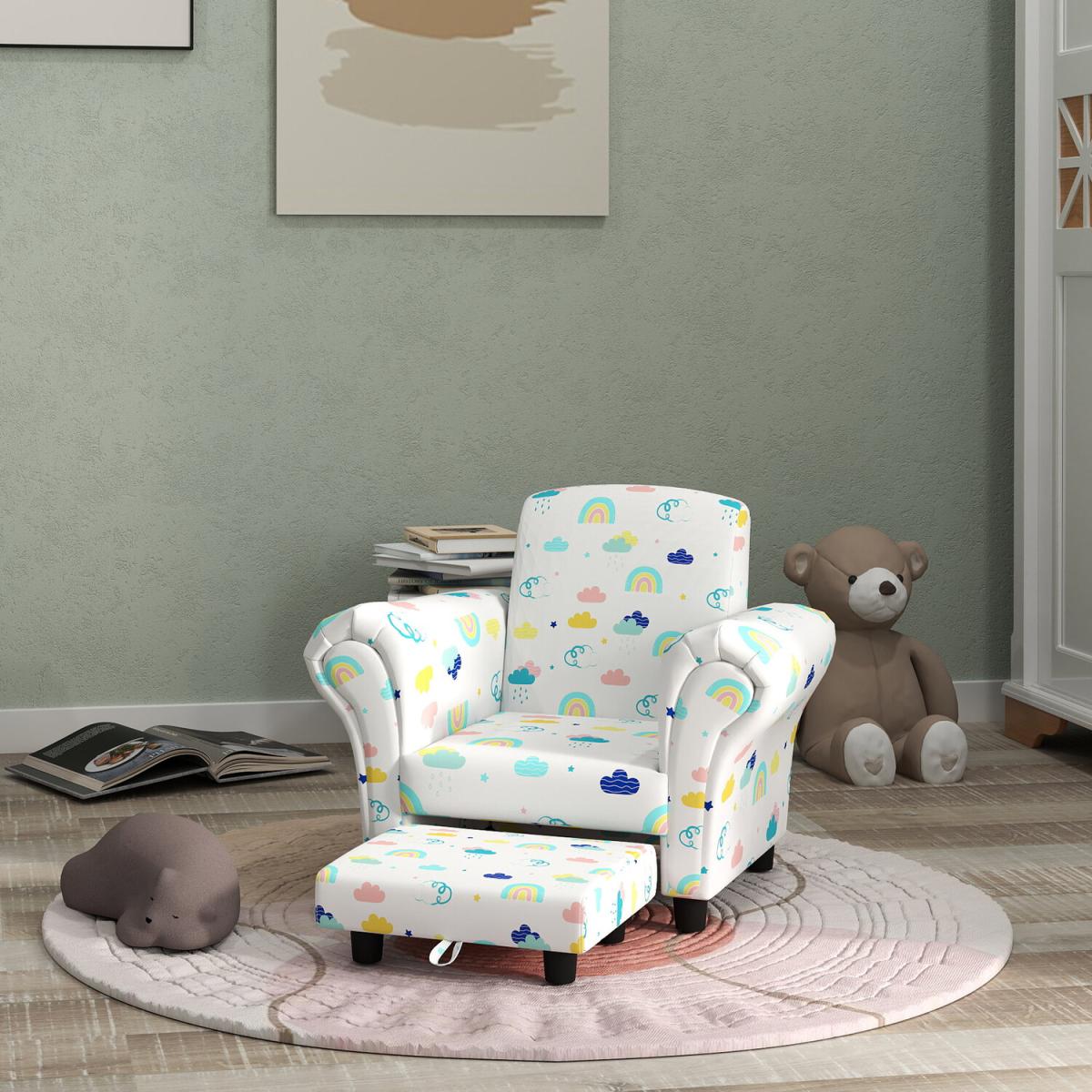 Transform your little kids space with the AIYAPLAY kids sofa set, featuring a print. This two-piece set includes a comfy kids armchair and a clever mini sofa stool that tucks away for easy storage. Crafted with soft fabric, padded sponge and stable wood, it's a delightful addition for any toddler's play area or bedroom. Suitable for children aged 1.5-3 years.
