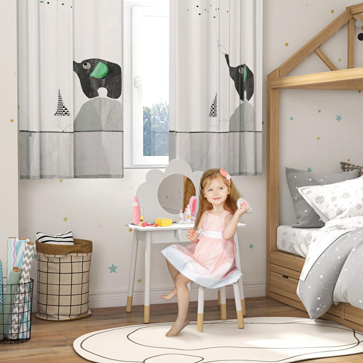 AIYAPLAY Kids Dressing Table with Mirror, Stool, Drawer, Cloud Design - White