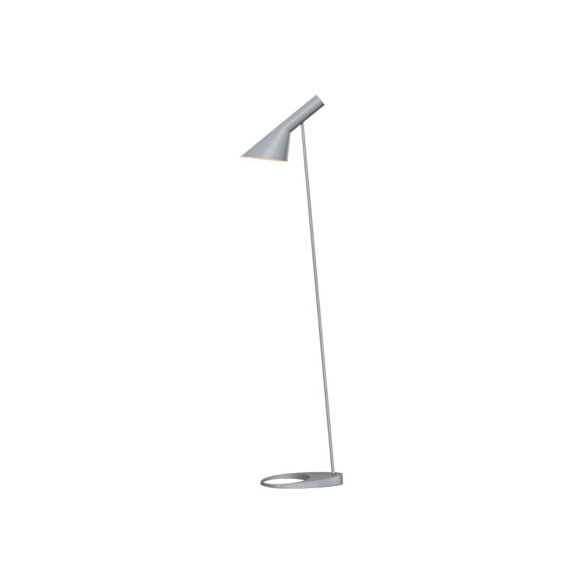 The iconic AJ Floor Lamp was designed by Arne Jacobsen in 1957 for Copenhagen's SAS Royal Hotel and is manufactured today by Louis Poulsen. Crafted from spun steel and moulded zinc, two geometric shapes allow the shade to direct light exactly where needed. The inside of the shade is painted white for soft, comfortable light and the angle is fully adjustable to the user's needs. The sculptural lamp is produced by Louis Poulsen, a Danish lighting manufacturer founded in 1874. Through collaborations with renowned designers such as Arne Jacobsen, Louis Poulsen has established itself as one of the leading architectural lighting producers in the world. Requires: 1x max 60W E27 bulb (not included).