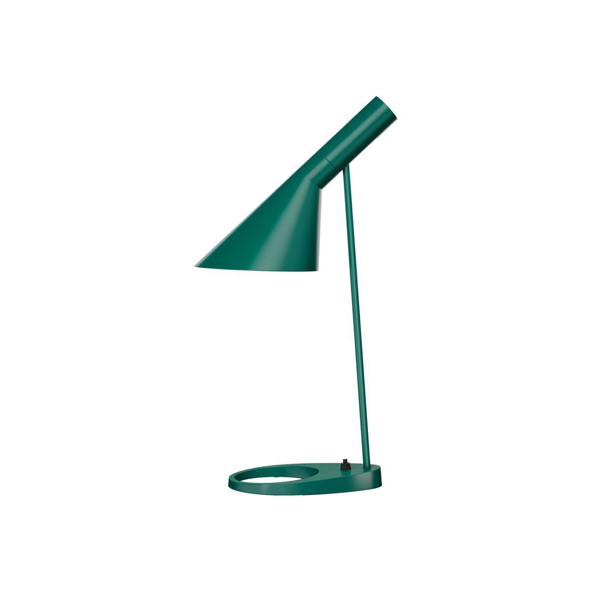 The iconic AJ Table Lamp was designed by Arne Jacobsen in 1957 for Copenhagen's SAS Royal Hotel and is available in an assortment of striking hues, including its original stainless steel finish by Louis Poulsen. Crafted from spun steel and moulded zinc, two geometric shapes allow the shade to direct light exactly where needed. The inside of the shade is painted white for soft, comfortable light and the angle is fully adjustable to the user's needs. The sculptural lamp is produced by Louis Poulsen, a Danish lighting manufacturer founded in 1874. Through collaborations with renowned designers such as Arne Jacobsen, Louis Poulsen has established itself as one of the leading architectural lighting producers in the world. Requires: 1x max. 60W E27 bulb (not included).