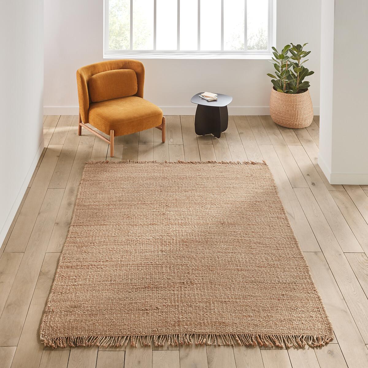 The Ajan jute rug. Opt for plant trends with this Ajan rug and add character to your interior. Product Details • 100% jute, natural colour • Fringed edging. Quality Info • Hand-braided, each piece is unique and authentic. Given its artisanal manufacture, the jute runner is not suitable for an area of ​​heavy foot traffic. Sizes Size 1 • Width: 120cm • Length: 170cm. Size 2 • Width: 170cm • Length: 230cm. Size 3 • Width: 200cm • Length: 290cm • FIBRE FROM A WATER-SAVING CROP. Jute is a material that requires little irrigation and very few phytosanitary products.