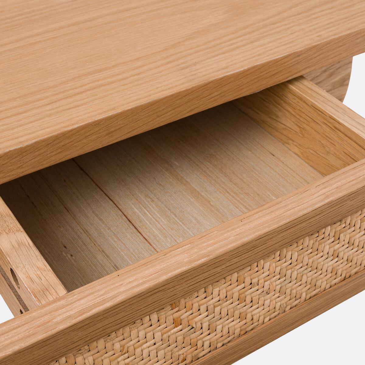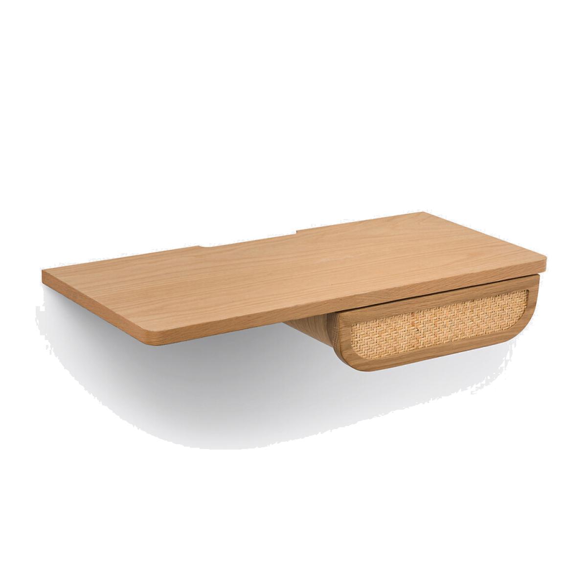 Simplicity, style and functionality; this is the Ajory wall-mounted bedside table. A graphic and contemporary line. An original and super trendy design. An original creation by La Redoute Interiors. Product Details • 1 reversible drawer, the drawer can be positioned on the right or left • In oak and oak veneered MDF, nitrocellulose varnish finish • Rattan cane drawer front • FSC® certified wood • Cutout for cable passage • To be fixed to the wall (screws and plugs not supplied).Dimensions. Overall • Width: 70cm • Height: 12cm • Depth: 32cm • Weight: 8.1kg. Usable dimensions • Drawer:L20.7 x H5 x D24.2cmDelivery:. This product required assembly. Available for home delivery. • WOOD FROM SUSTAINABLY MANAGED FORESTS. FSC® certified wood comes from forests that are environmentally, socially and economically well managed. Dimensions and weight of parcel • 1 parcel • L77 x H17 x D40cm. 8.5kg.