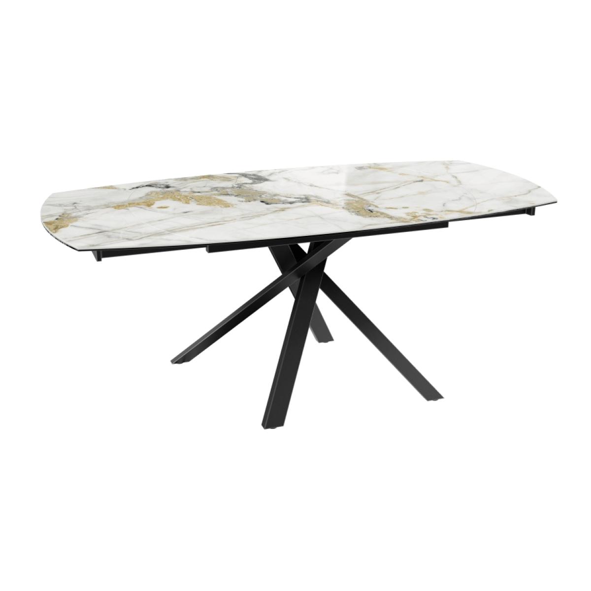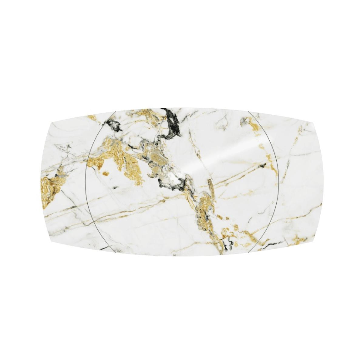The Akante Kheops Doro Marble table is an adaptable dining table. When closed, it measures 130cm by 100cm. When open, it extends to 190cm. Available in 5 different ceramic finishes, the ceramic plate is glued upon 8 mm of tempered glass making the table extremely resistant. The table's base is black lacquered steel with a unique compelling design. All you have to do is rotate the central plate to make the two extensions embedded underneath the plate fold out. A work of art in motion, in the spirit of Akante. Synchronised mechanism Table Top: 3mm thick ceramic glued upon a 8 mm glass pane Legs: Matt black lacquered steel Dimansions Length: 130cm / 190cm extended Width: 100cm Height: 76cm Weight: 99kg All screens vary in colour reproduction and whilst every effort has been made to display the colour as accurately as possible it is for guidance only