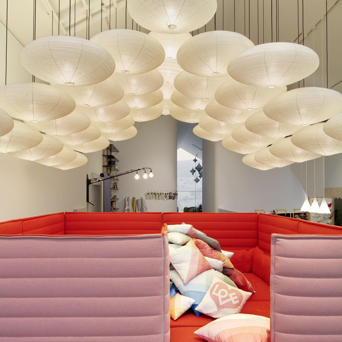 The work of Japanese-American artist and creation Isamu Noguchi (1904–1988) is exceptional given its great diversity. His sculptural style had a lasting influence on the formal language of organic design in the 1950s. Other than sculptures, the created theatre décor, furniture and lighting, and also designed interiors, as well as public parks and spaces. In 1951, Isamu Noguchi began designing the Akari illuminated sculptures, pieces that appear to defy the laws of gravity. He christened his lamps with the name "akari", which is the Japanese term used to express clarity or light, whilst also evoking the idea of being lightweight. Whilst travelling in Japan, Noguchi visited Gifu, a town famous for producing paper lanterns and parasols. That's when he create his two initial sketches for the Akari Light Sculptures, which would come to be developed across more than 100 other models over the coming years. Each lamp is meticulously made by hand in the Ozeki manufacturing site, which is a family-run business in the town of Gifu. Bamboo reeds are first stretched over the original wooden model created by Noguchi, forming the framework that goes on to determine the contours of the lamp. The traditional washi paper, made from the bark of the mulberry tree, is cut into strips measured to the size and shape of the lamp, and is then glued onto the bamboo structure. After drying, the inner framework is removed and the lampshade can be folded. For shipment or storage, the Akari Light Sculptures are flat-packed into cardboard boxes, specifically designed for the purpose. Isamu Noguchi: "The magic of paper re-transforms cold electricity into original light - the sun - so that its warmth can continue to fill our rooms at night. " Each of the Akari Light Sculptures lamps is marked with a symbol, guaranteeing the authenticity of each piece. This symbol represents the contours of a sun and a moon, reproduced in the style of Japanese ideograms.