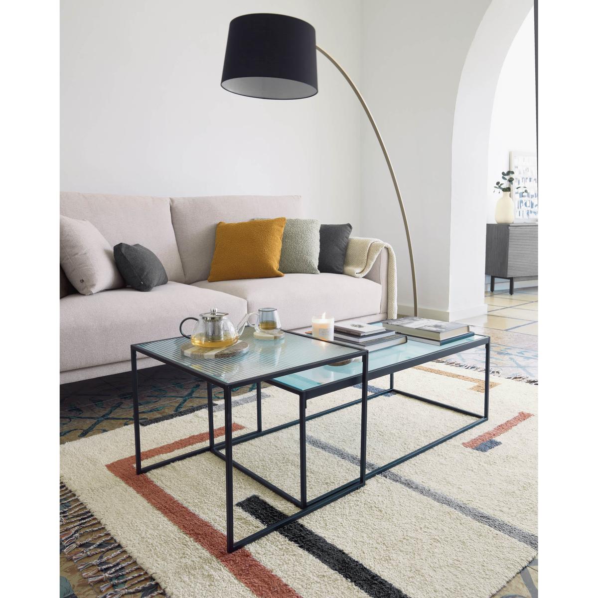 I’m a fan of the Akemi duo for its slim black frame and clear glass tops, which keep living areas feeling open and light. They’re ideal for modern, Scandi-inspired or industrial schemes and work equally well in smaller flats thanks to their nesting design. For styling, offset the smaller table slightly from the larger one to create visual interest, then keep surfaces pared back: a low vase with fresh greenery, a neat stack of books and a simple tray for remotes or a candle. A textured rug underneath will anchor the pair and prevent them from feeling too austere.