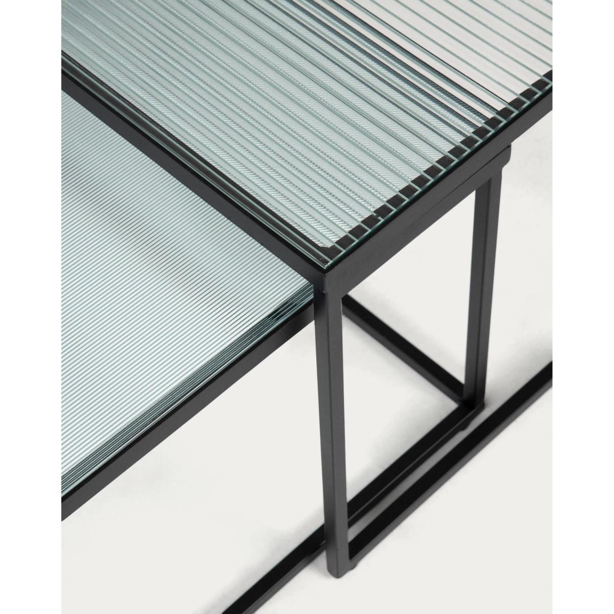 These side tables made out of textured glass are the perfect choice if you are looking to create an industrial feel in your interior. One table is 50 x 55 cm the other is 100 x 50 cm, give you everything you need to enjoy your home to the fullest.