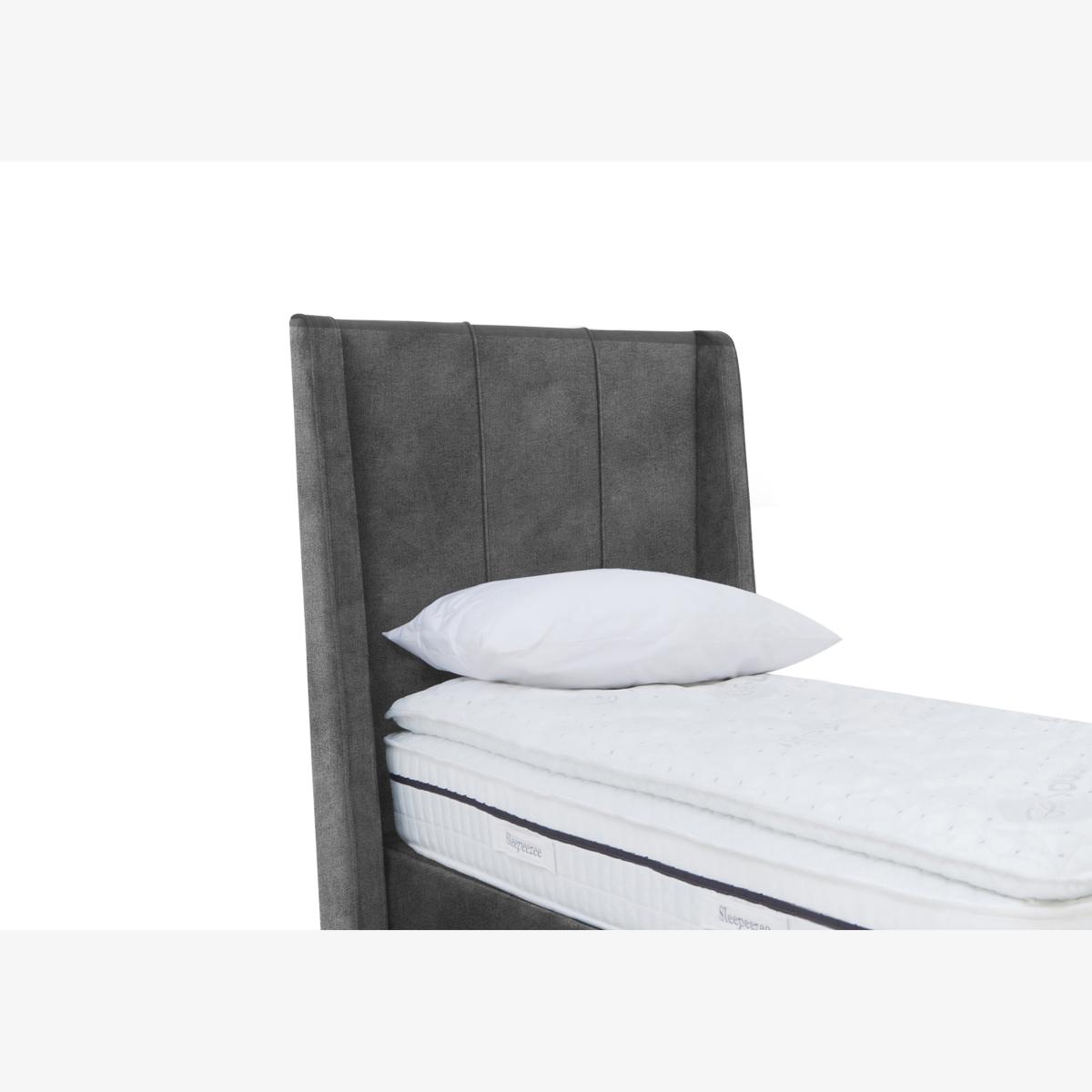 Enjoy modern glam bedroom style and perfectly personalised comfort with an adjustable divan bed base from our Akira range. Electric-powered for the smoothest of movements and with multi-setting remote control operation, these divan bases represent the height of adjustable bed technology. And because each comes complete with a beautifully upholstered and decidedly sumptuous headboard, they also score top marks for contemporary style. Bed bases are available in a choice of sizes and offer optional built-in storage and massage functionality. The range also includes dual bases. Designed and handcrafted exclusively for Furniture Village, the Akira range is part of our E-Motion adjustable bed collection. Give your bedroom a modern glam look with this luxurious floor standing headboard, handcrafted in the UK and exclusive to Furniture Village. Why you'll love it Floor standing headboard showcases modern glam style. Sweeping winged sides and vertical fluting. Luxuriously upholstered from top to floor for a neatly finished appearance. Made with sustainable FSC-sourced wood. In a choice of beautiful fabrics. Handcrafted in the UK. This headboard is only available at Furniture Village. What you need to know Available in single, small double, double, king and super king sizes. Clean regularly using a soft brush or vacuum with the curtain attachment. Deal with any spills promptly. Professional cleaning advised for oil- and grease-based stains. Some fabrics can show wear on areas of more use or in direct sunlight.