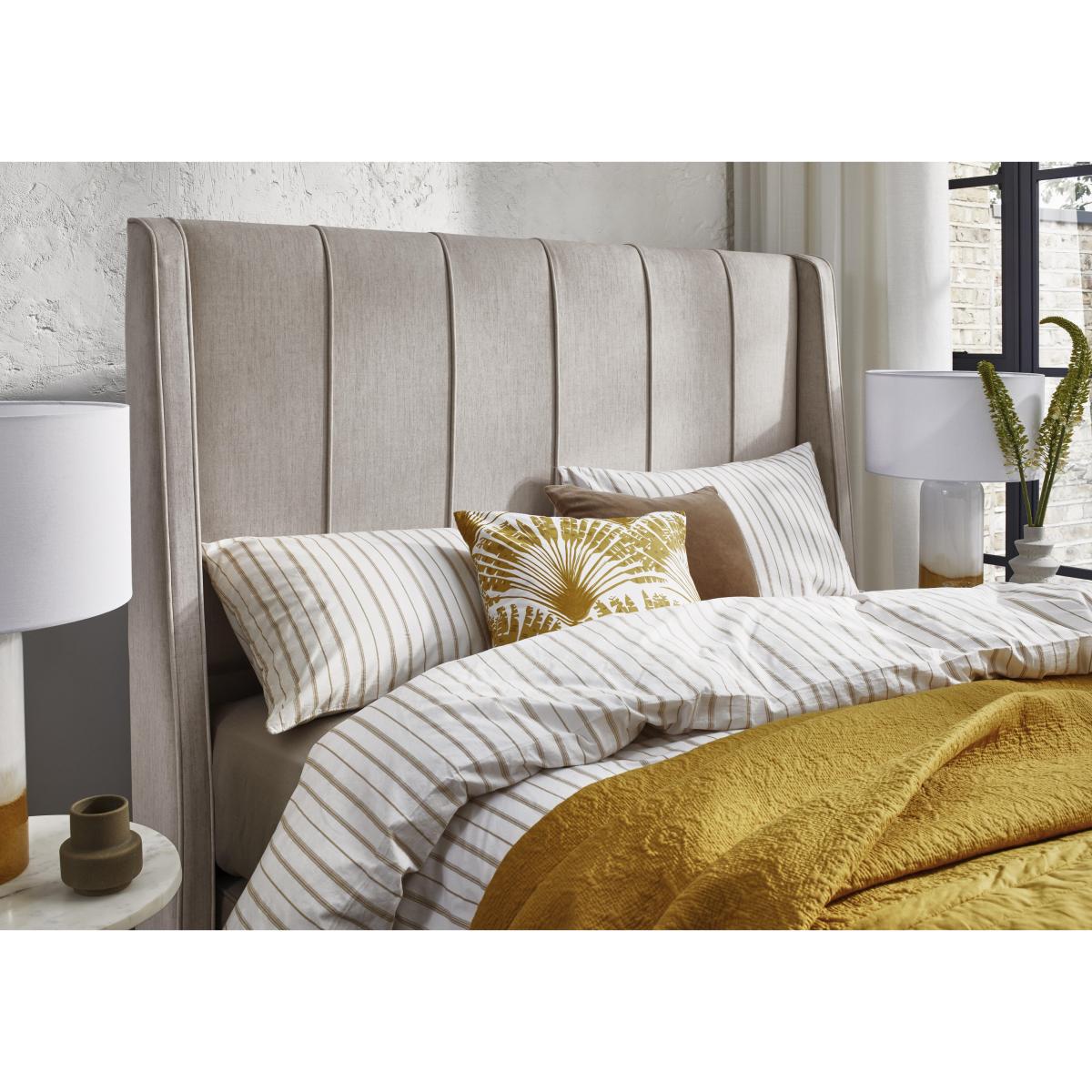 Enjoy modern glam bedroom style and perfectly personalised comfort with an adjustable divan bed base from our Akira range. Electric-powered for the smoothest of movements and with multi-setting remote control operation, these divan bases represent the height of adjustable bed technology. And because each comes complete with a beautifully upholstered and decidedly sumptuous headboard, they also score top marks for contemporary style. Bed bases are available in a choice of sizes and offer optional built-in storage and massage functionality. The range also includes dual bases. Designed and handcrafted exclusively for Furniture Village, the Akira range is part of our E-Motion adjustable bed collection. Give your bedroom a modern glam look with this luxurious floor standing headboard, handcrafted in the UK and exclusive to Furniture Village. Why you'll love it Stunning floor standing headboard showcases modern glam style. Sweeping winged sides and embellished with rows of vertical piping. Fully upholstered from top to floor for a flawless finish and a luxurious look. In a choice of beautiful fabrics. Handcrafted in the UK. Find the Akira floor standing headboard only at Furniture Village. What you need to know This floor standing headboard is supplied with bolts to attach it to a divan base. Available in single, small double, double, king and super king sizes. 140 cm tall. Available in single, small double, double, king and super king sizes. Clean regularly using a soft brush or vacuum with the curtain attachment. Deal with any spills promptly. Professional cleaning advised for oil- and grease-based stains. Some fabrics can show wear on areas of more use or in direct sunlight. Item code: AKI-HB50--046
