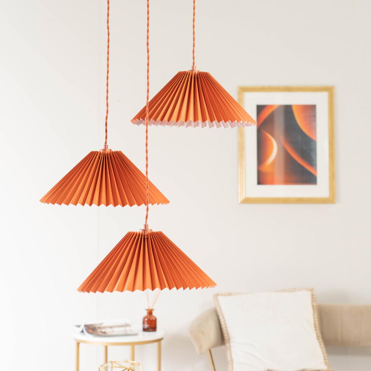 Akira Pleated 3 Way Triple Drop Ceiling Pendant Light - Orange