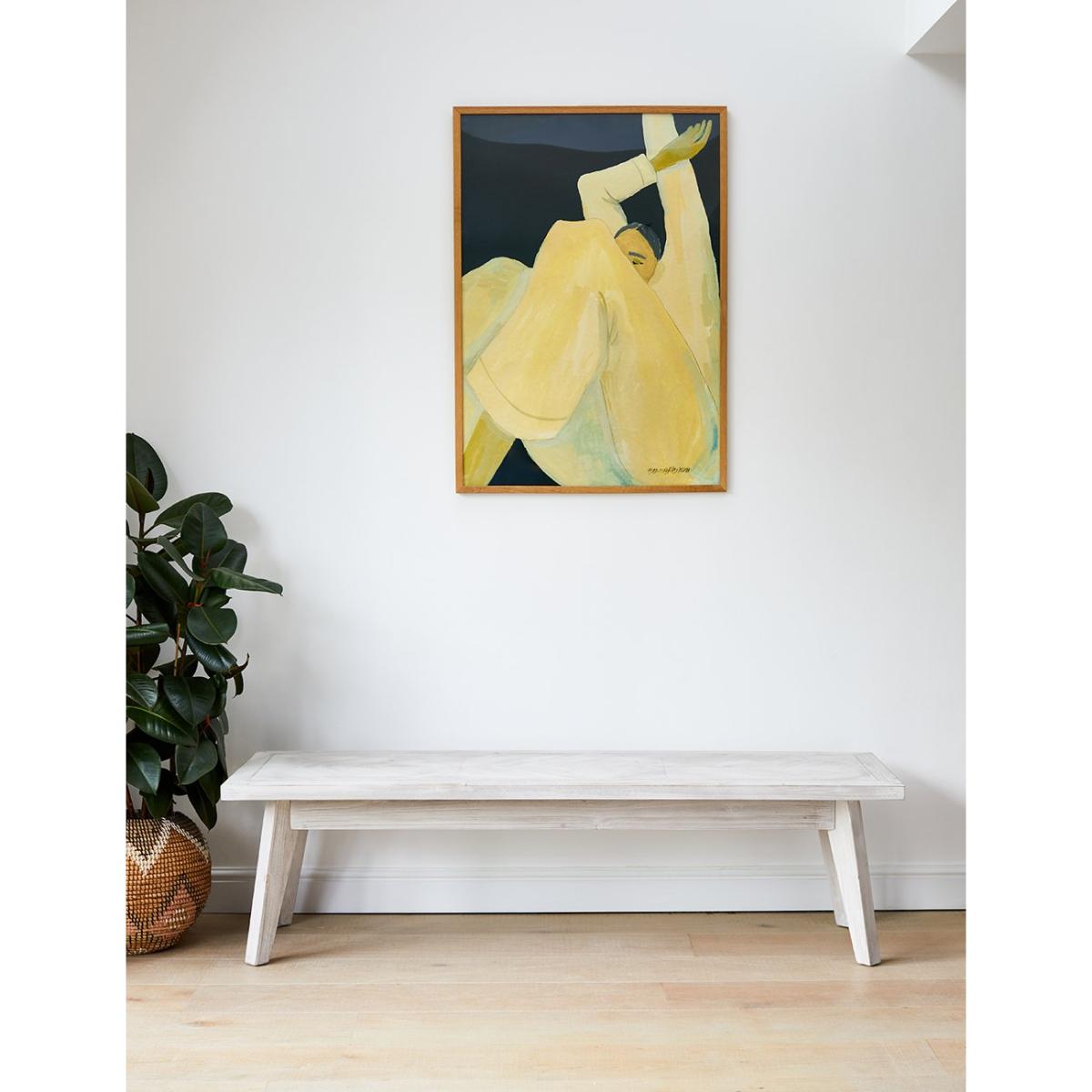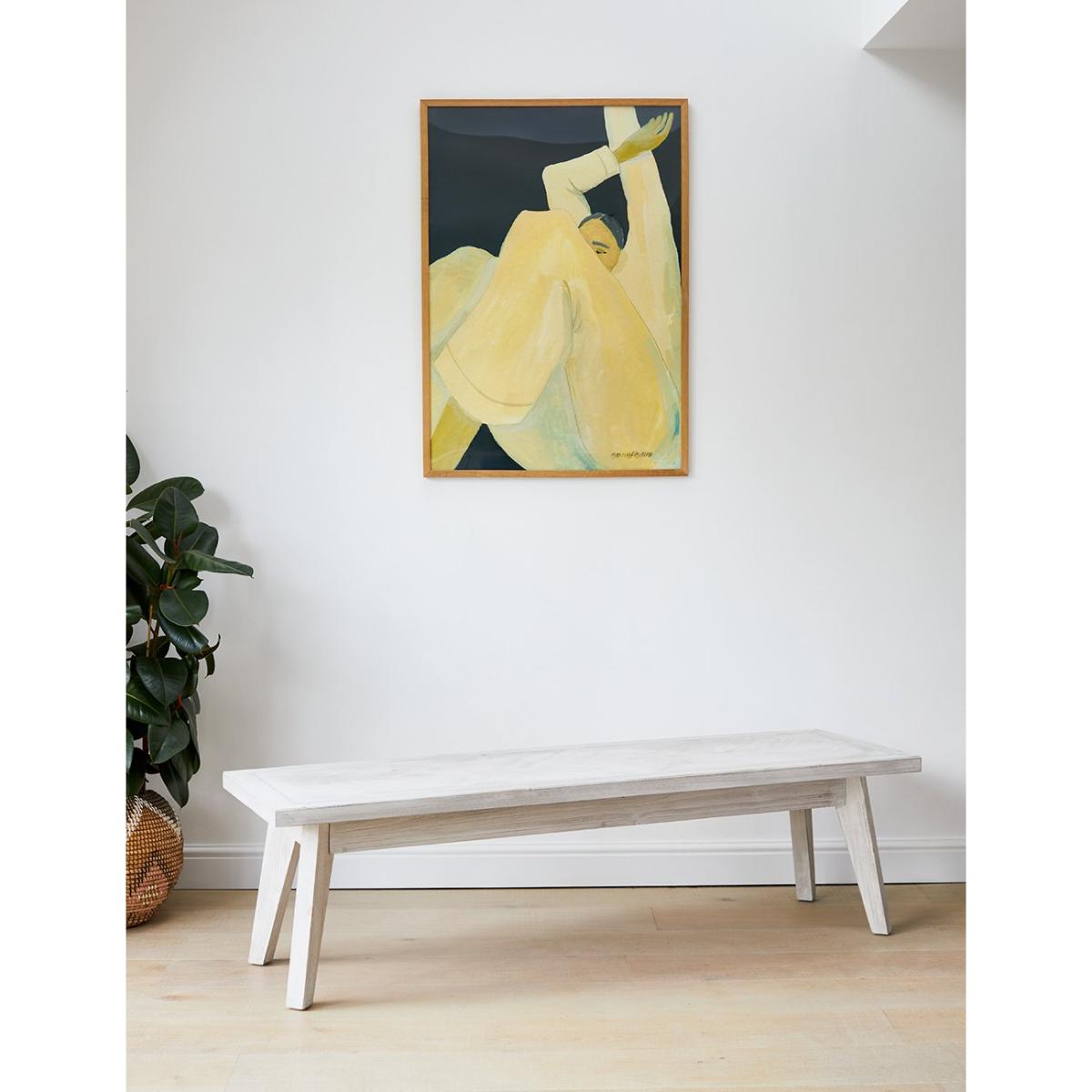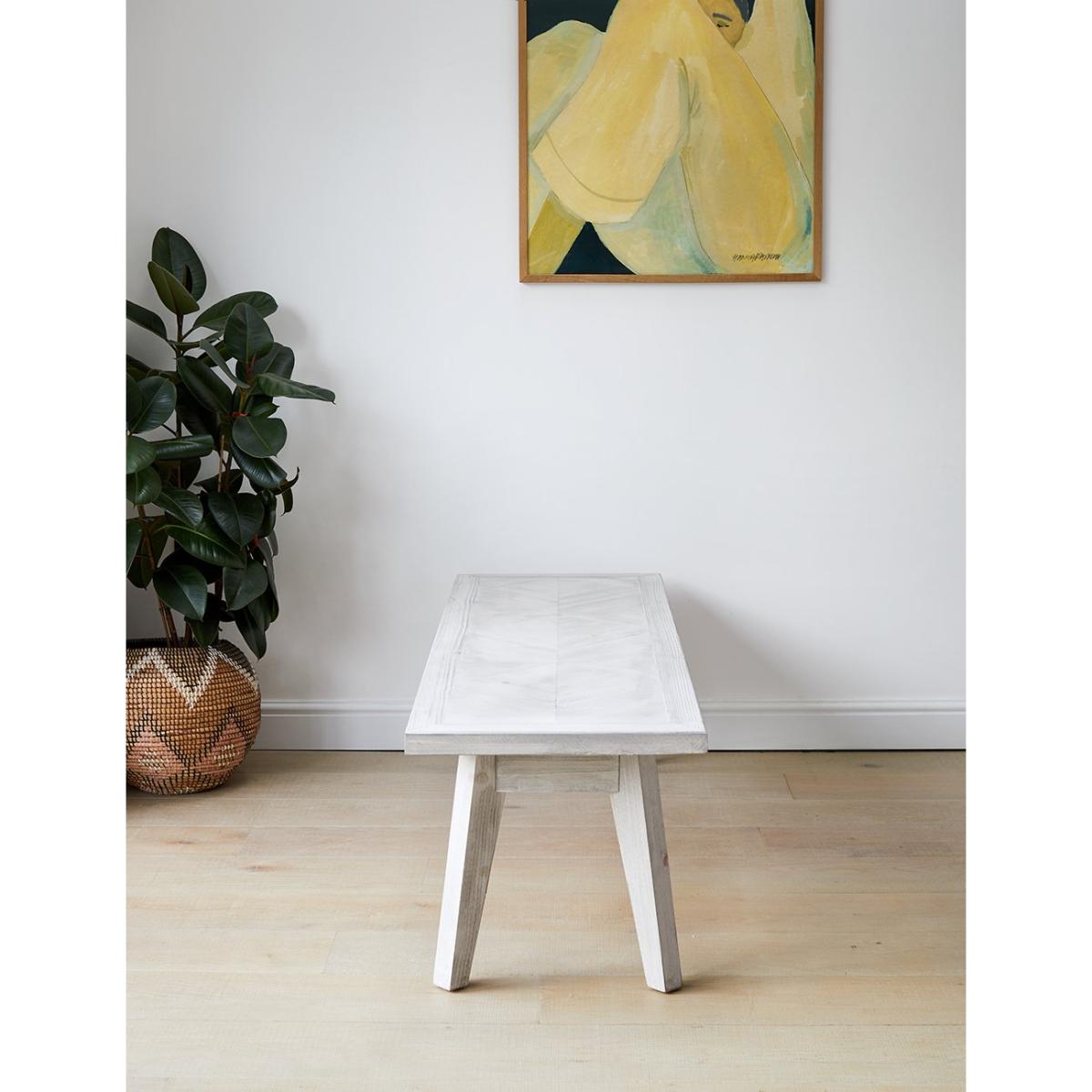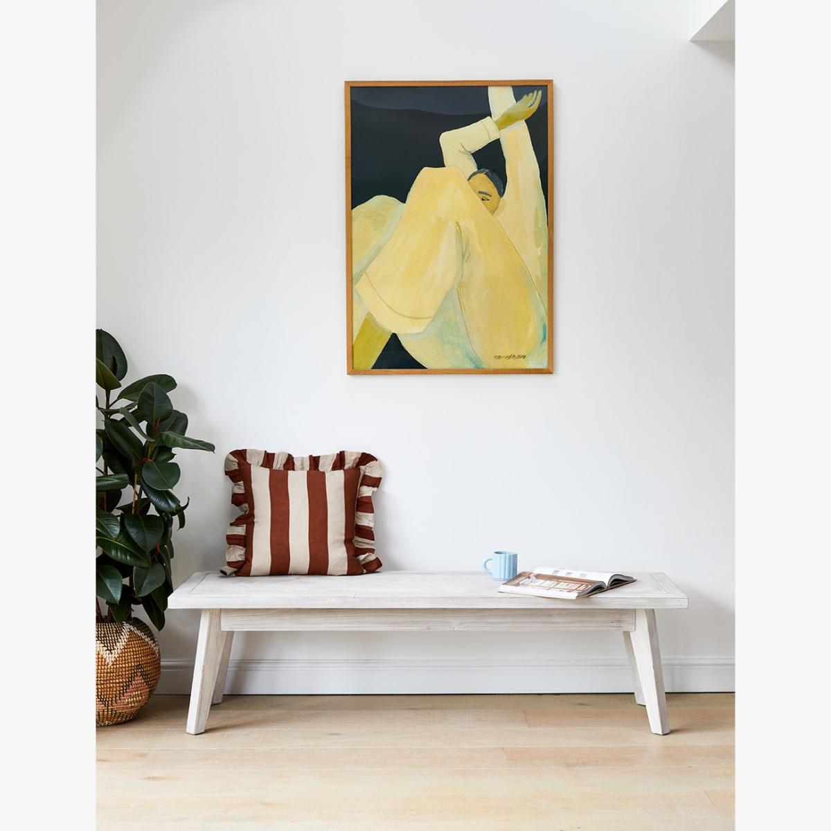I love this light-wood bench for its clean lines and easy versatility. It fits seamlessly into Scandi, modern-minimal and coastal schemes, its pale finish warming a neutral palette without stealing the show. For styling, top it with a striped cushion and a folded woollen throw, or place a slim tray holding a plant and magazines. Tuck it under a simple console mirror in the hall or pair it with a jute rug beneath for added texture.