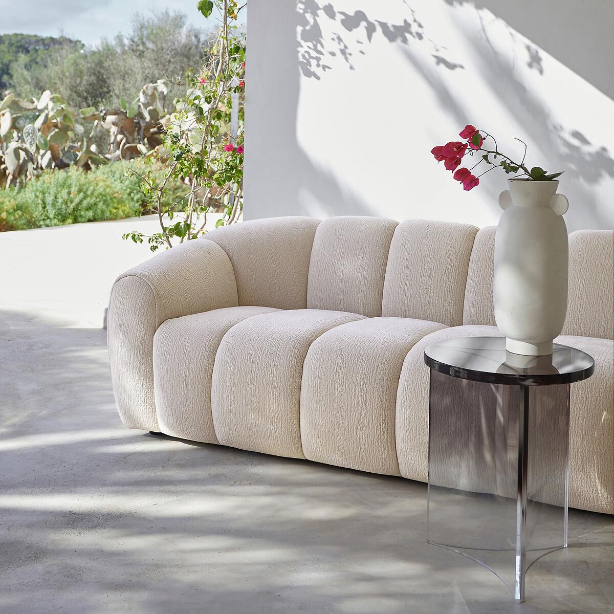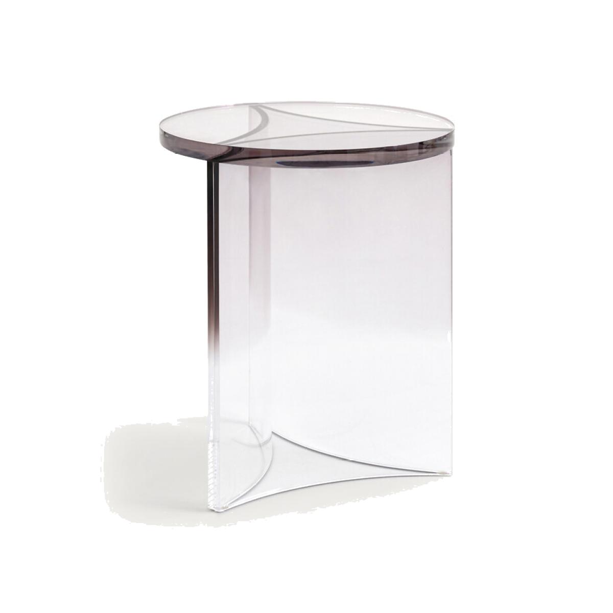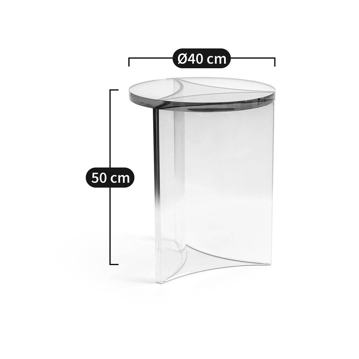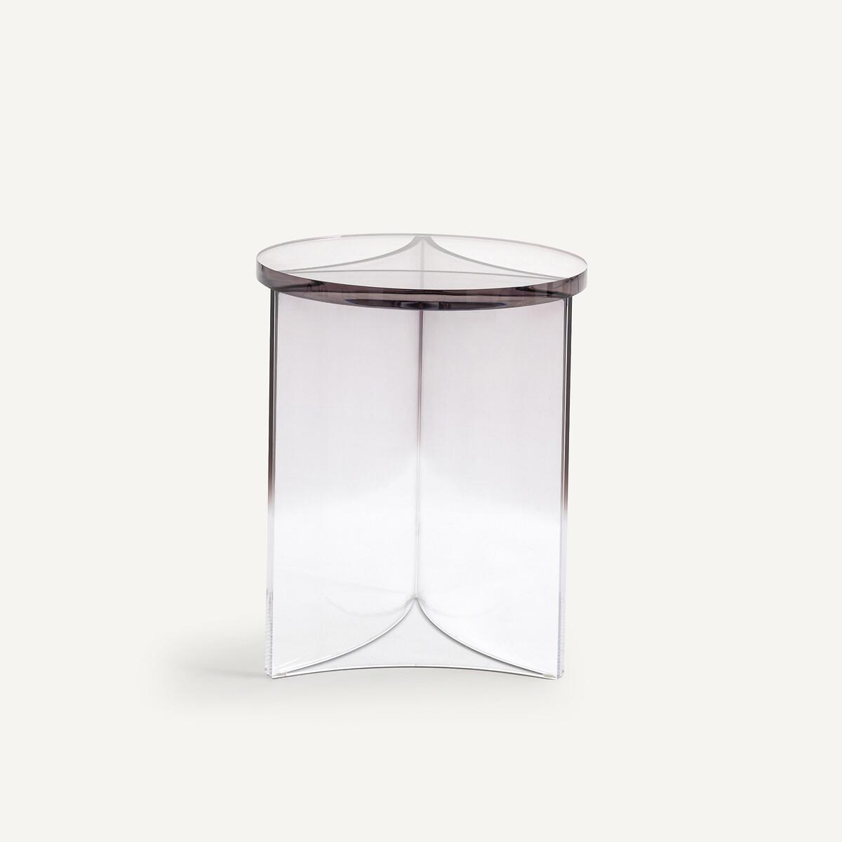 Designed in mass-dyed transparent acrylic, the Akrili end table stands out with a design inspired by the 70s and sober colours. A signature piece by AMPM.Product Details • Thick round acrylic top, thickness 2.5cm • Central base composed of 3 sheets of acrylic joined together, thickness. 1cm • Mass-dyed colour. Care instructions • Wipe a soft cloth with a little water over the surface. • Avoid placing hot objects on it, we recommend using coasters. • Prolonged exposure to direct sunlight is not recommended. Daylight is suitable for everyday use. • This product is susceptible to scratches. Ban scratching sponges. • We recommend the use of small pads under objects directly in contact with the surface: vases, cups...Dimensions • Diameter: 40cm • Height: 50cmDelivery:. Sold pre-assembled. Dimensions and weight of parcel1 parcel • L52 x H62 x D52cm, 12kg