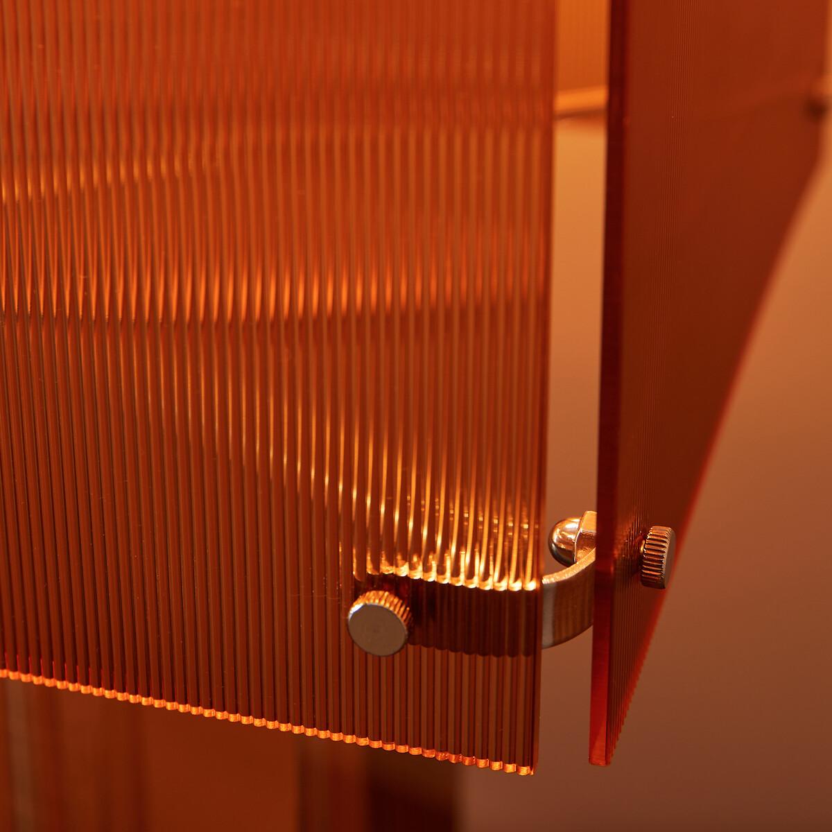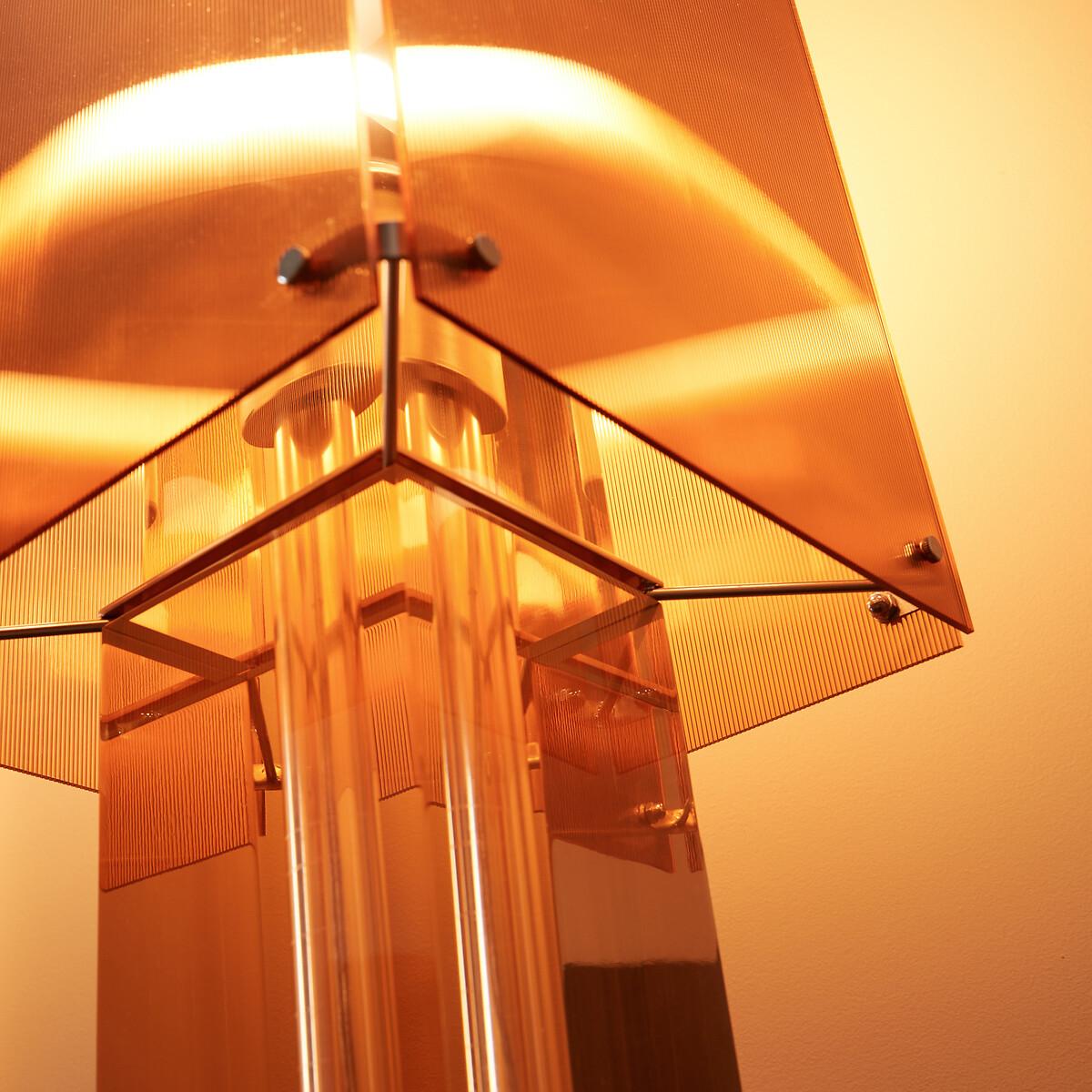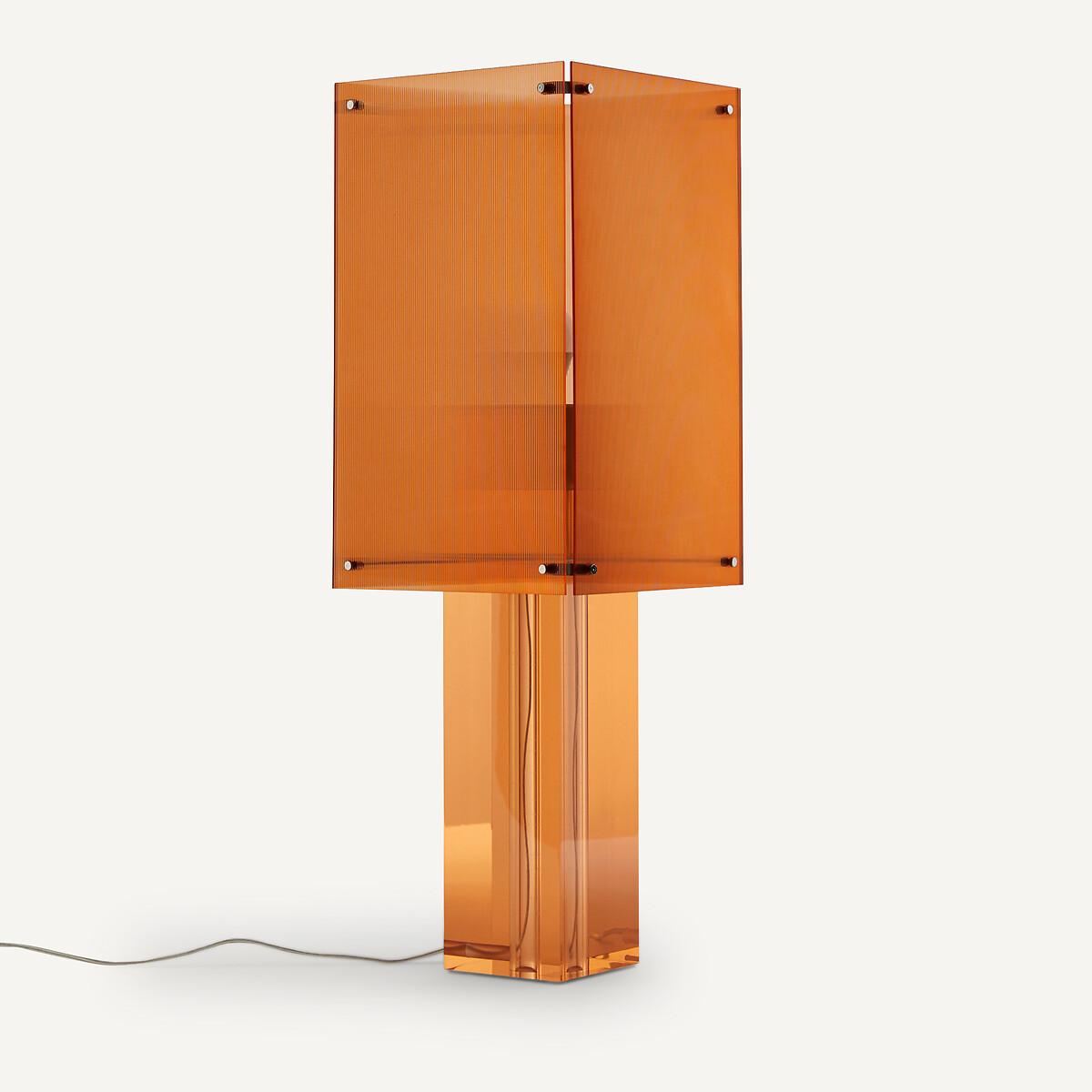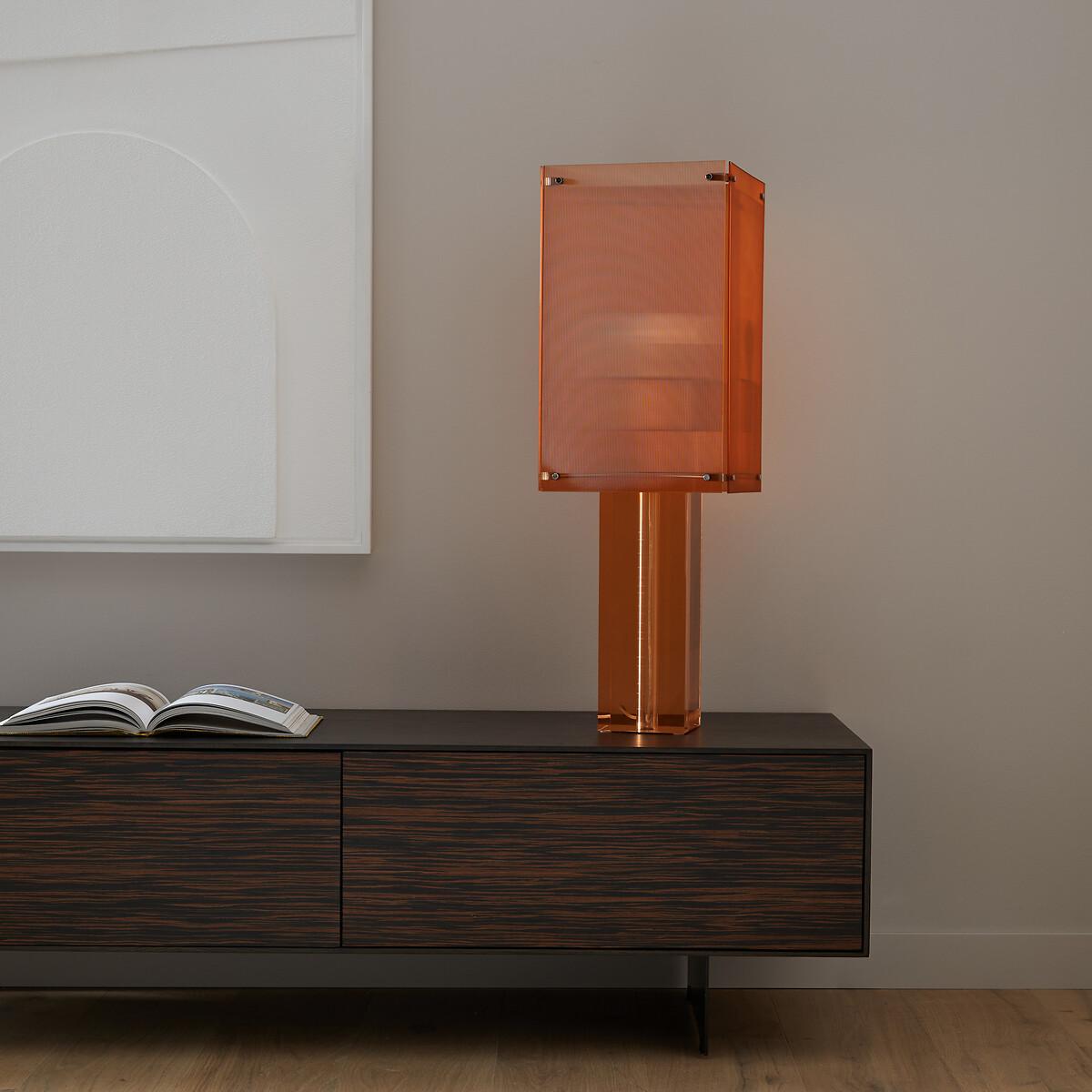 Inspired by the seventies, the Akrilona lamp is a sculptural object. The striped surface of the orange lampshade diffuses a diffracted, warm and slightly sparkling ambient light. Its four translucent plates are screwed onto a tone-on-tone, smooth and transparent acrylic foot. Ideal on a sideboard or console, a contemporary and decorative piece by AMPM.Product Details • Ribbed lampshade made up of 4 screwed plates in coloured acrylic • Coloured transparent acrylic base • Socket for E27/LED bulb 8W max (not supplied) - we recommend a bulb with a minimum diameter of 9cm • Compatible with energy class bulbs: A • Transparent cableDimensions. Overall Dimensions • Width: 24cm • Length: 24cm • Height: 74cm. Lampshade • Width: 24cm • Length: 24cm • Height: 42cm. Base • Width: 12cm • Length: 12cm • Height: 47cm Parcel dimensions and weight • 1 parcel • L30 x H20 x D54cm. 5.2kg.