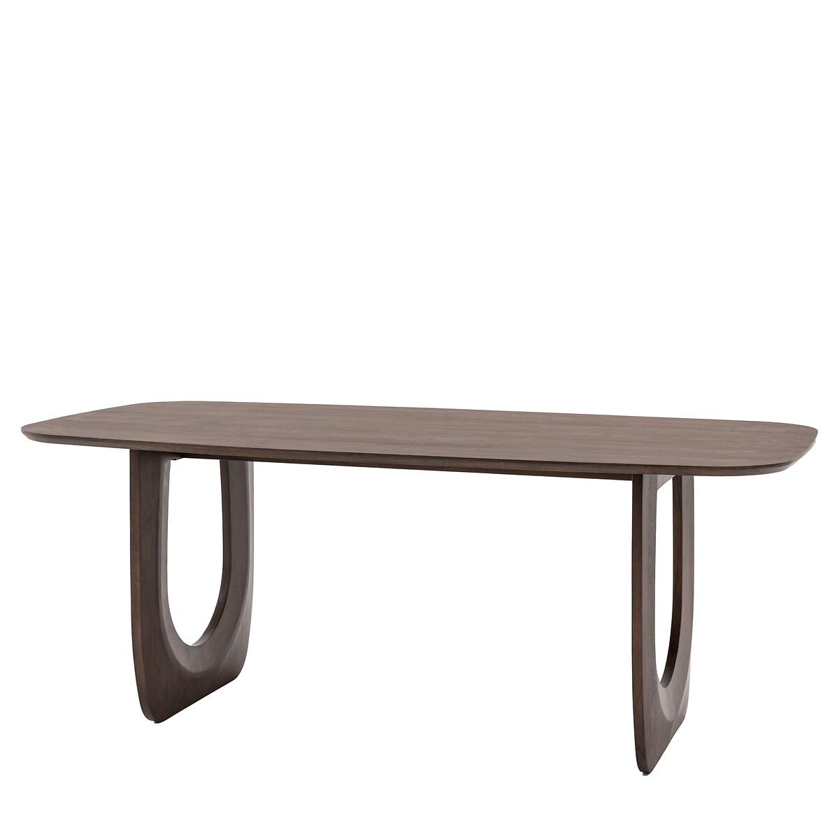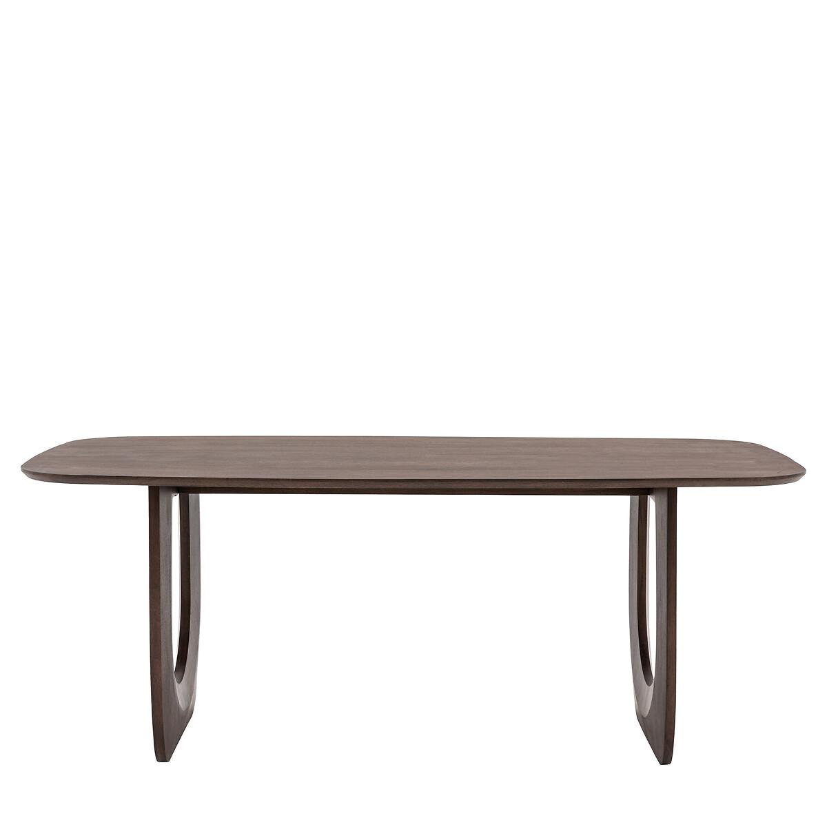 A cool 70s inspired piece with ergonomic shaping and organic curves. This table is sure to bring warmth and character to any dining room with its unique carved legs and rich dark finish and gently sloping edges. Made with solid mango hardwood, richly grained and beautiful as well as being strong and durable, with a high lustre that can last for years. Mango wood has a low carbon footprint; trees reach maturity quickly and are used for furniture when they stop bearing fruit. Stylish and sustainable. Product Details • Seats 6 • Rectangle shaped with rounded corners • Natural grained wood stained a dark walnut colour • Partial assembly required - legs/feet only. Product Composition - Mango Wood 96% / Metal Plate 4% Product Dimensions - 100 cm x200 cm x76 cm , Weight - 61.2 KGLeg / Feet Height - 73 cm Clearance to Floor - 73 cm Package Dimensions - 208 cm x 109 cm x 14 cm, Weight 70.1 kg. This product will be dispatched by one of our trusted suppliers. You’ll be contacted by their selected courier about your delivery. Please note: this product cannot be delivered to all Offshore Islands, Northern Ireland or Republic of Ireland. GALLE01