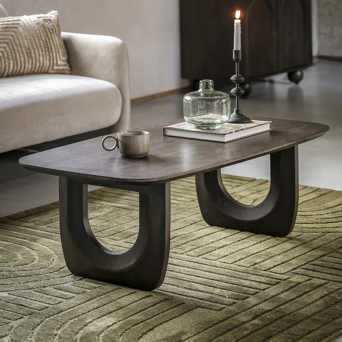 Add a bit of retro style to your living room with this bold on trend 70s influenced coffee table. Made with solid mango wood stained a dramatic dark walnut tone. Mango wood is a strong and durable hardwood which can keep its high lustre texture for years. Mango wood has a low carbon footprint; trees reach maturity quickly and are used for furniture when they stop bearing fruit. Stylish and sustainable. Product details • Natural grained wood stained a dark walnut colour • Carved legs • Rounded corners • Partial assembly required (legs/feet only)Product Composition - Mango Wood 98% / Metal Plate 2% Product Dimensions - 60 cm x 120 cm x 40 cm , Weight - 22.1 KGLeg / Feet Height - 37.5 cm Clearance to Floor - 37.5 cm Package Dimensions - 126 cm x 66 cm x 16 cm, Weight 25.7 kg. This product will be dispatched by one of our trusted suppliers. You’ll be contacted by their selected courier about your delivery. Please note: this product cannot be delivered to all Offshore Islands, Northern Ireland or Republic of Ireland.