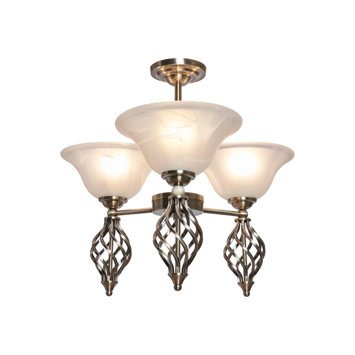 Alabaster 3 Light Spiral Semi Flush Ceiling Light - Antique Brass