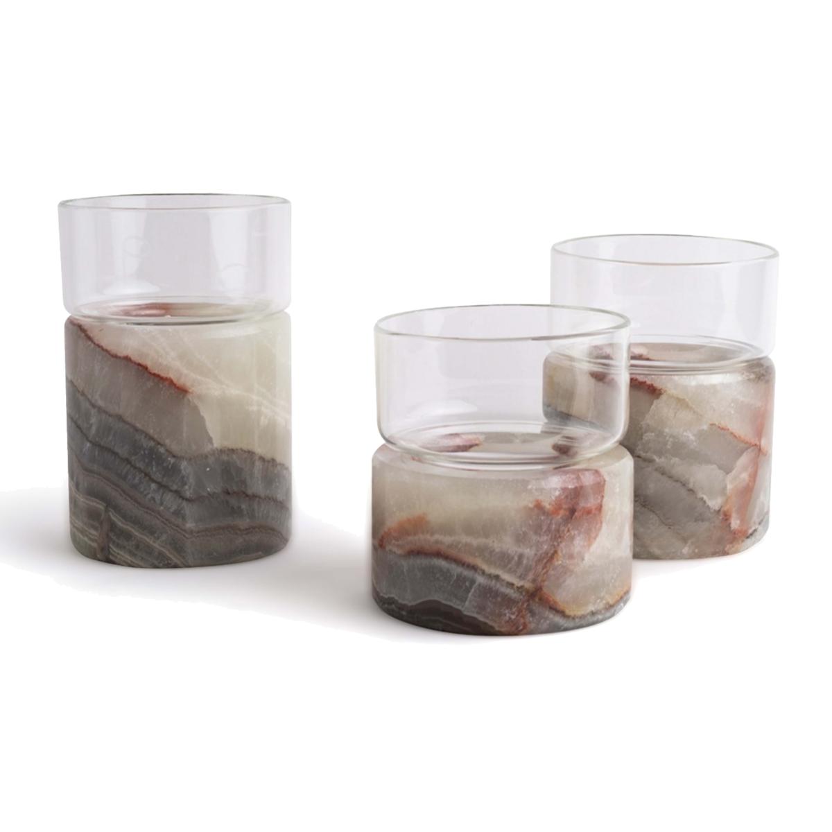 Alabaster Glass Santuario Candle Holder Set - Multicolour And Jacob