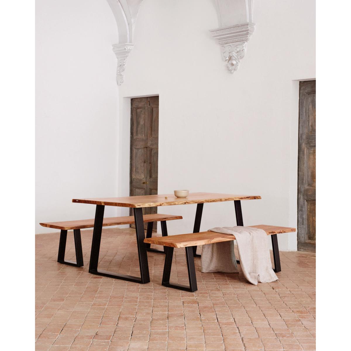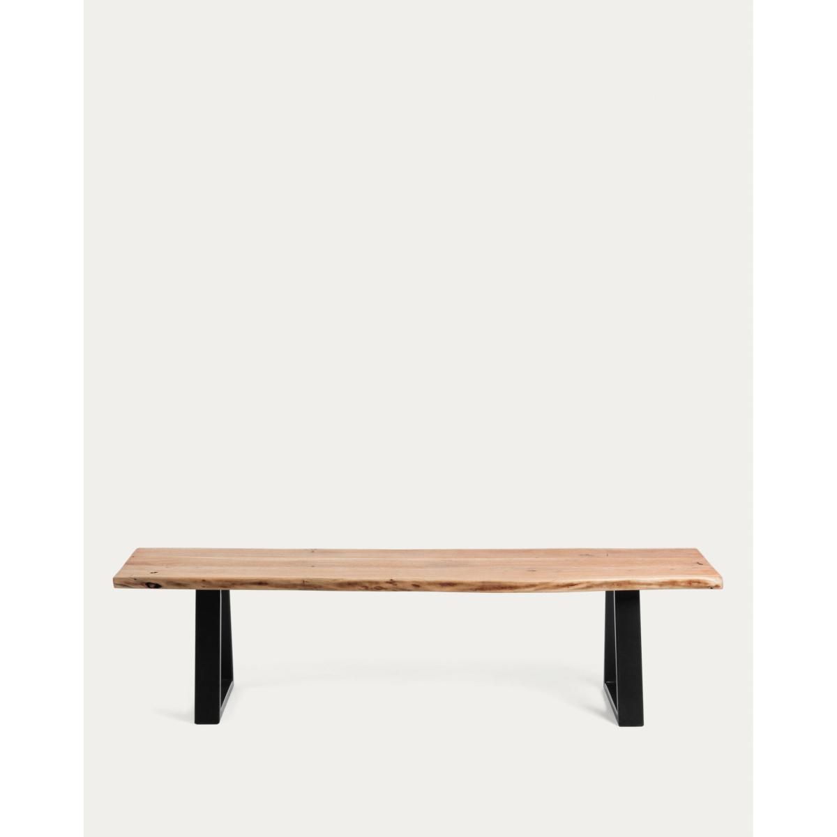 Alaia bench in solid acacia wood with black steel legs, 180 cm