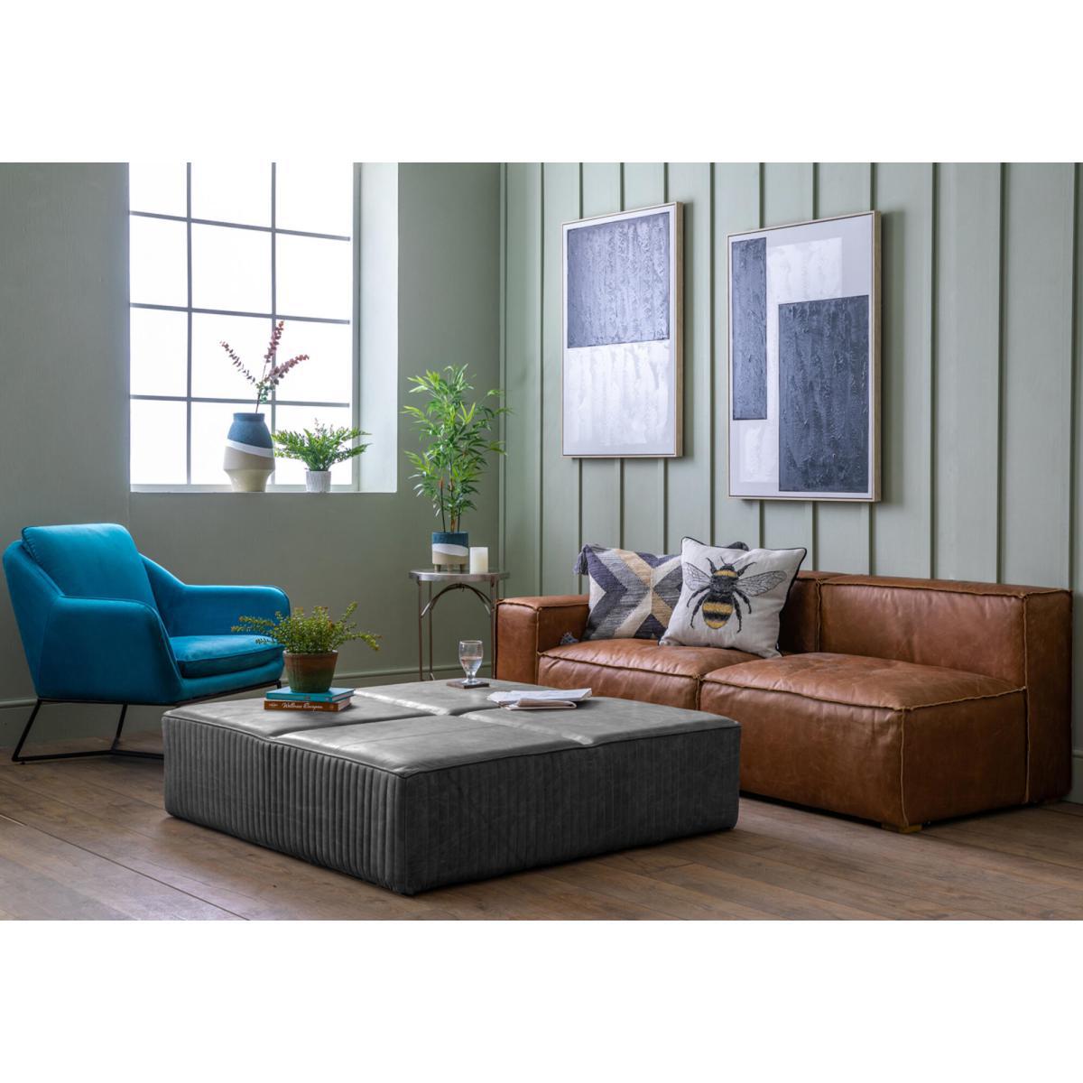 A contemporary piece with a retro vibe, the Alamos buffalo leather unit is a multi functional piece providing extra seating, a useful extra space to put down your book, or to simply put up your feet and relax.