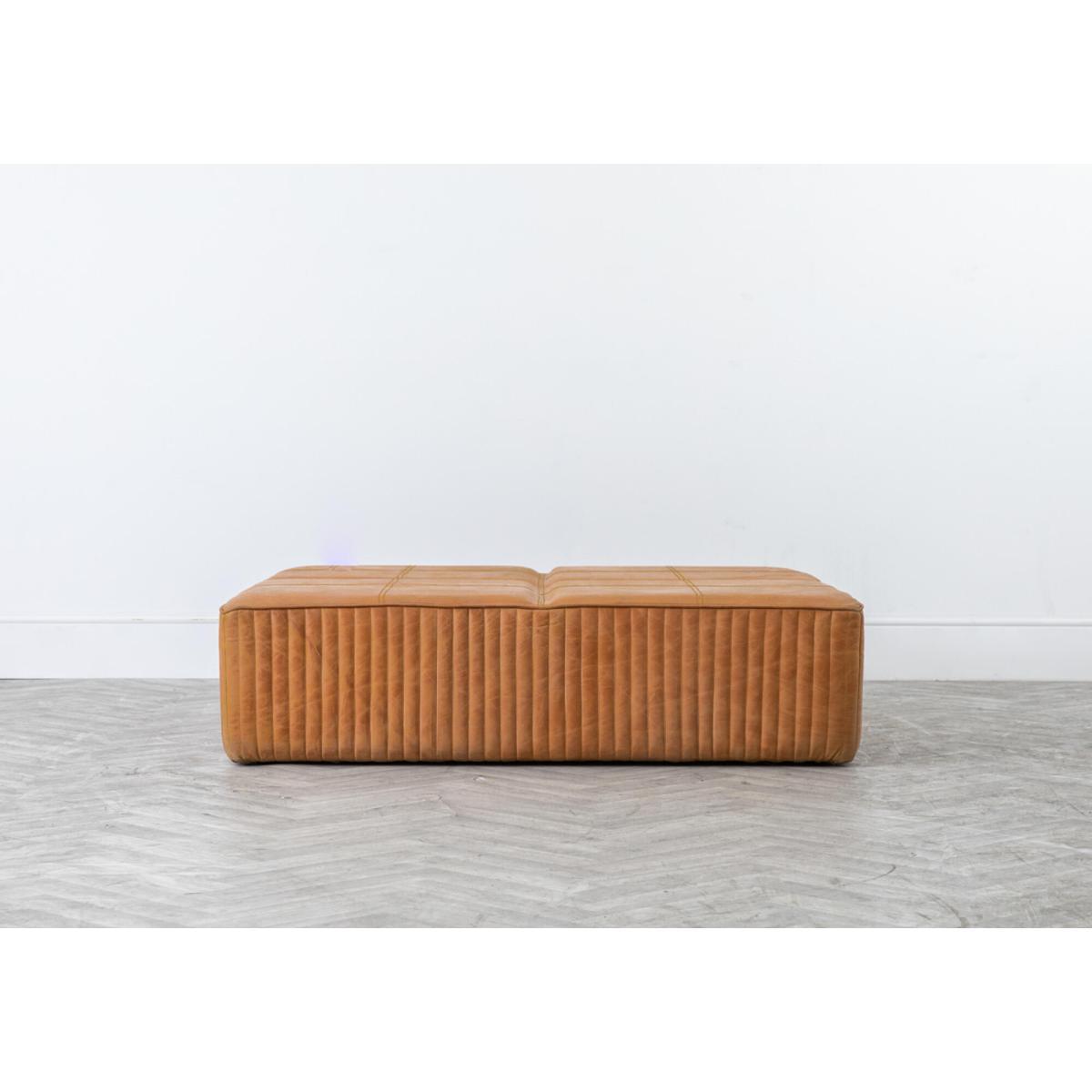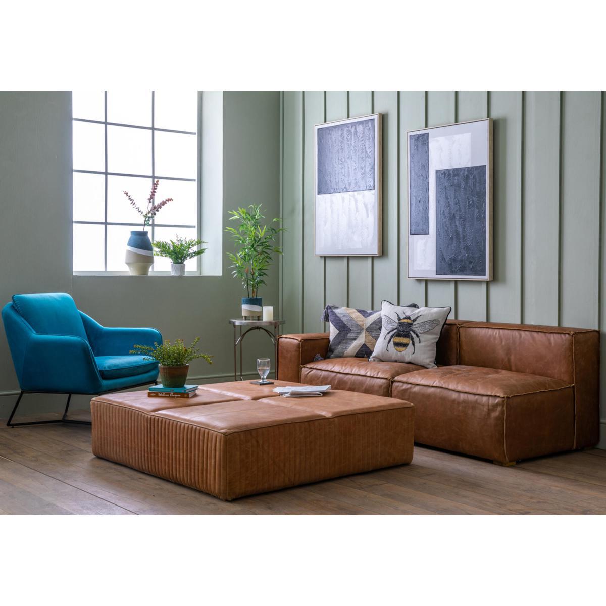 A contemporary piece with a retro vibe, the Alamos buffalo leather unit is a multi functional piece providing extra seating, a useful extra space to put down your book, or to simply put up your feet and relax.