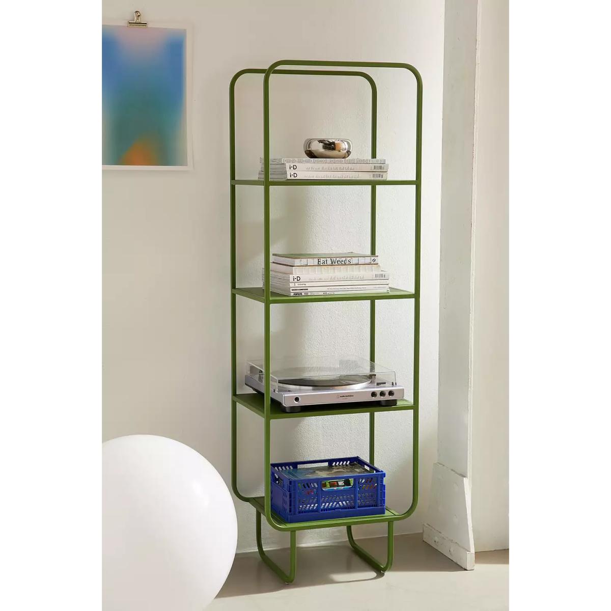 Organise your space with this modern shelfing. Crafted from iron with a colorful finish and four open shelves. Complete with curved edges and a narrow silhouette that fits in the tightest corners of your space. Only at UO. *Online return only. This item cannot be returned instore. Please note furniture items currently cannot be shipped to Northern Ireland or The Republic of Ireland. Delivery of large furniture items may take 1-2 weeks and are therefore not eligible for Next Day Delivery.* **Content + Care** \- Iron \- Wipe clean **Size** \- D: 33cm x W: 45.7cm x H: 143.5cm