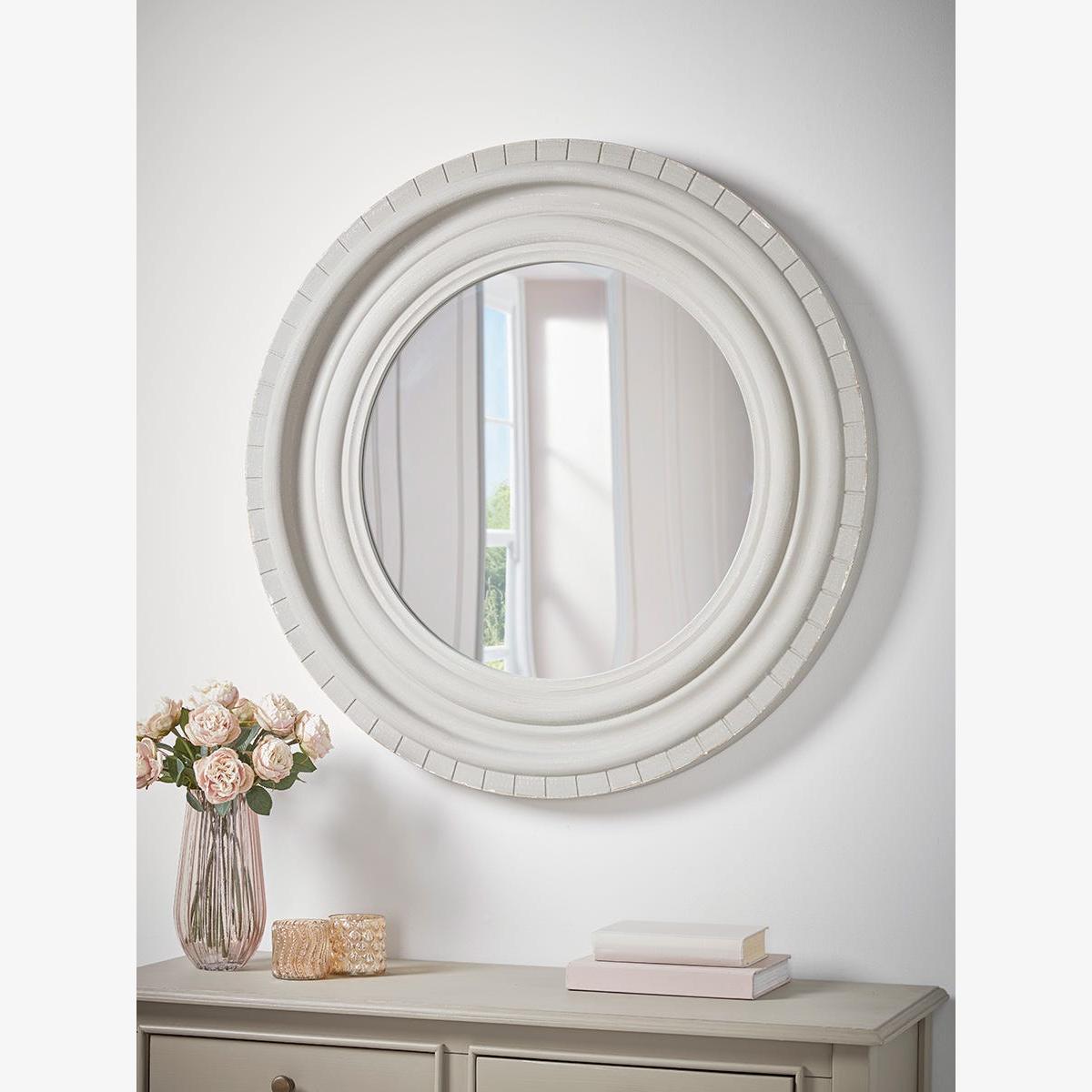 A simple statement piece that sits comfortably within our Faded Elegance trend, our Alana Round Mirror has a gently aged look that will give a chic appearance in any home. With a deep moulded wood frame and a soft grey painted finish, this mirror will bring a gentle finishing touch to a laid back setting.