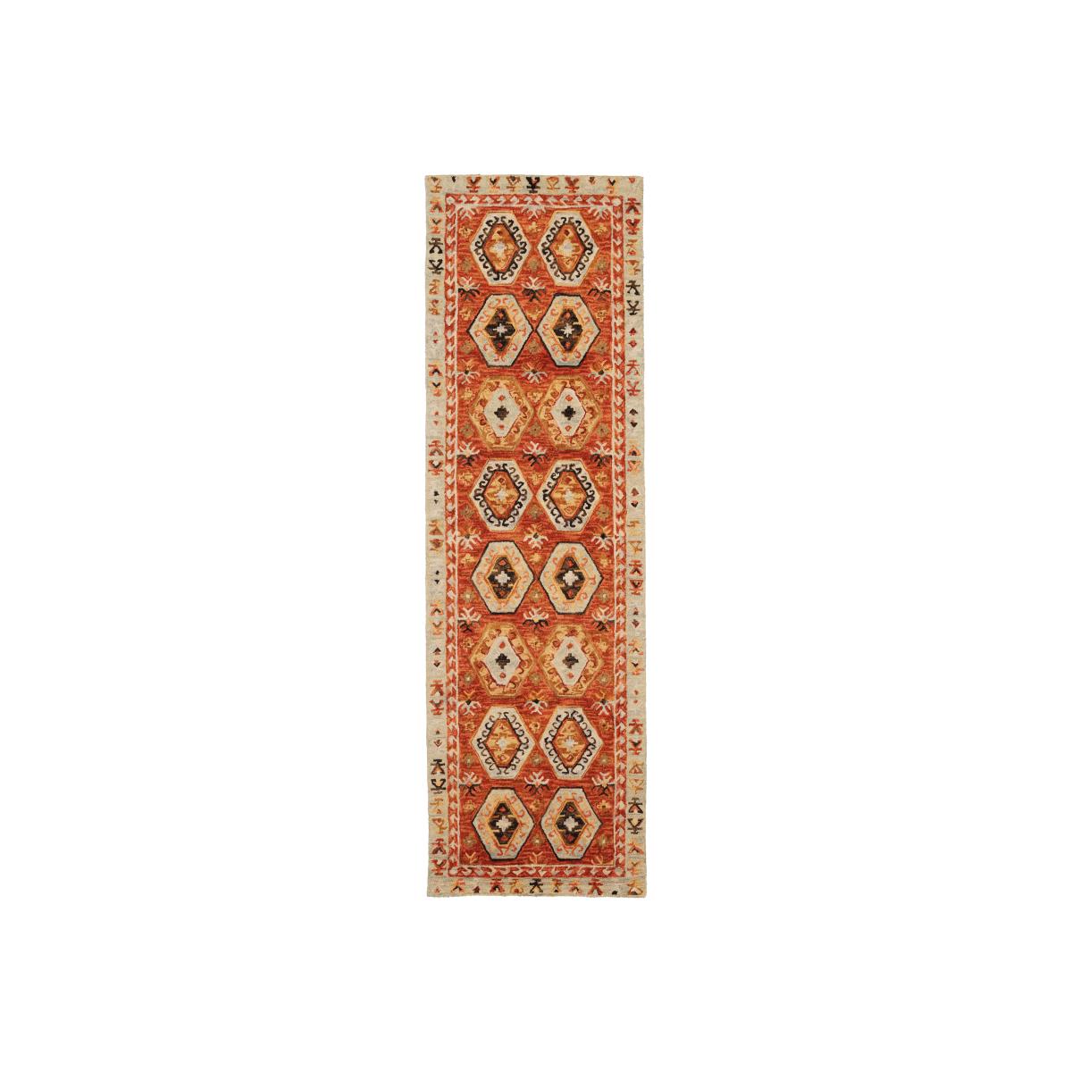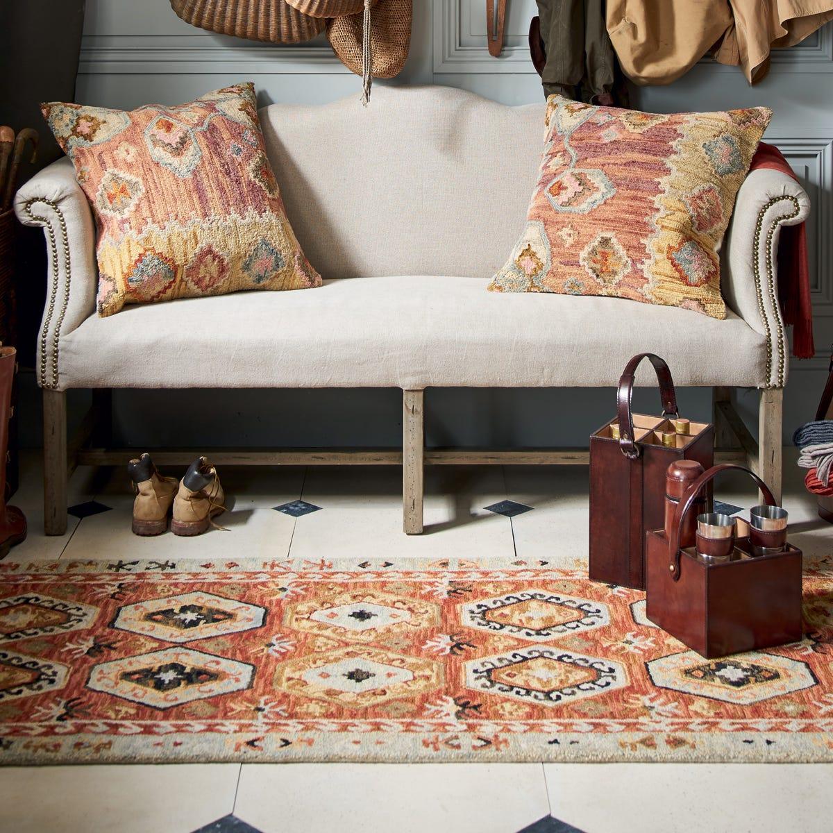 I love the Alanya Runner for its warm, earthy tones and intricate geometric pattern, making it a versatile piece for a variety of interiors. It works particularly well in rustic or bohemian spaces, adding a touch of personality alongside neutral furnishings, or in eclectic schemes where it can serve as a subtle statement. For styling, consider layering it over natural wood flooring or a neutral-colored rug to highlight its colours. Practical tips include placing it in a hallway, kitchen, or entryway to bring warmth and visual interest, or using it in a bedroom at the foot of the bed for a cosy, inviting feel. Its durable design also makes it a functional choice for high-traffic areas, blending practicality with aesthetic appeal seamlessly.
