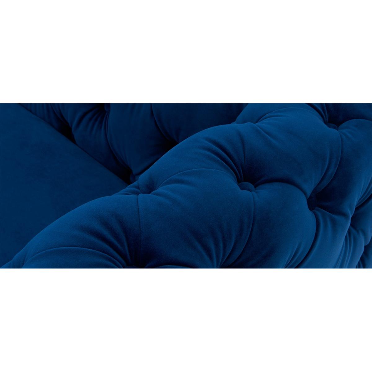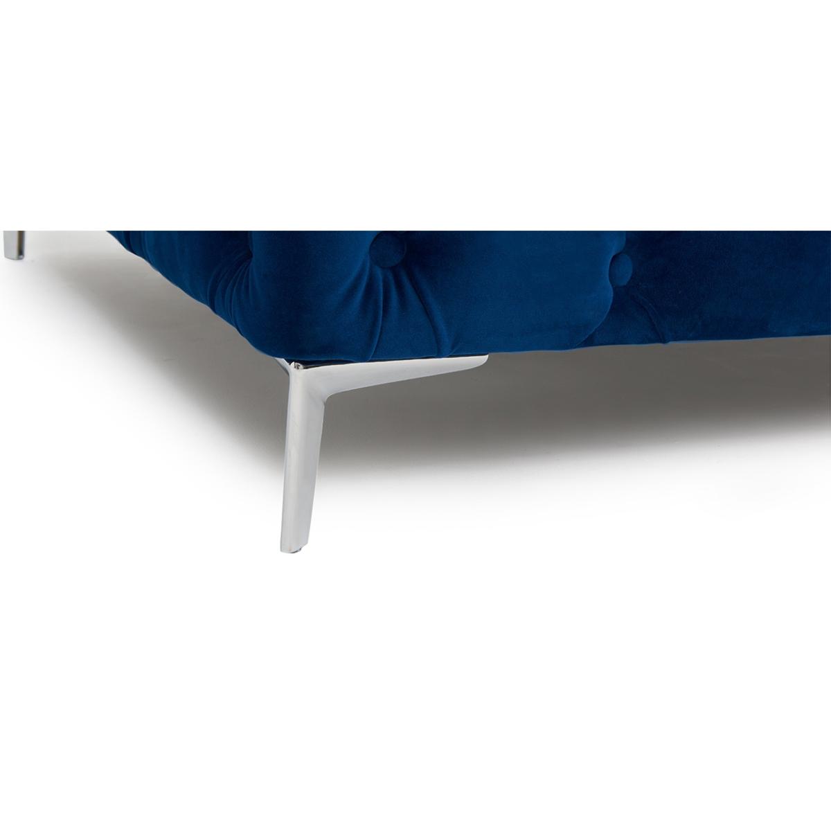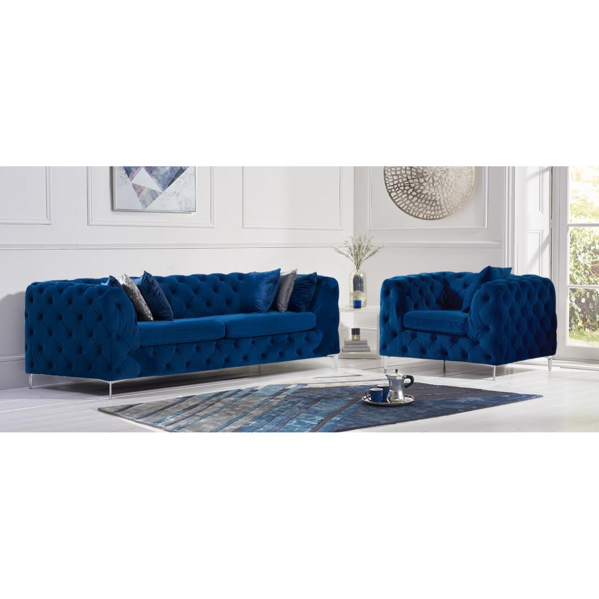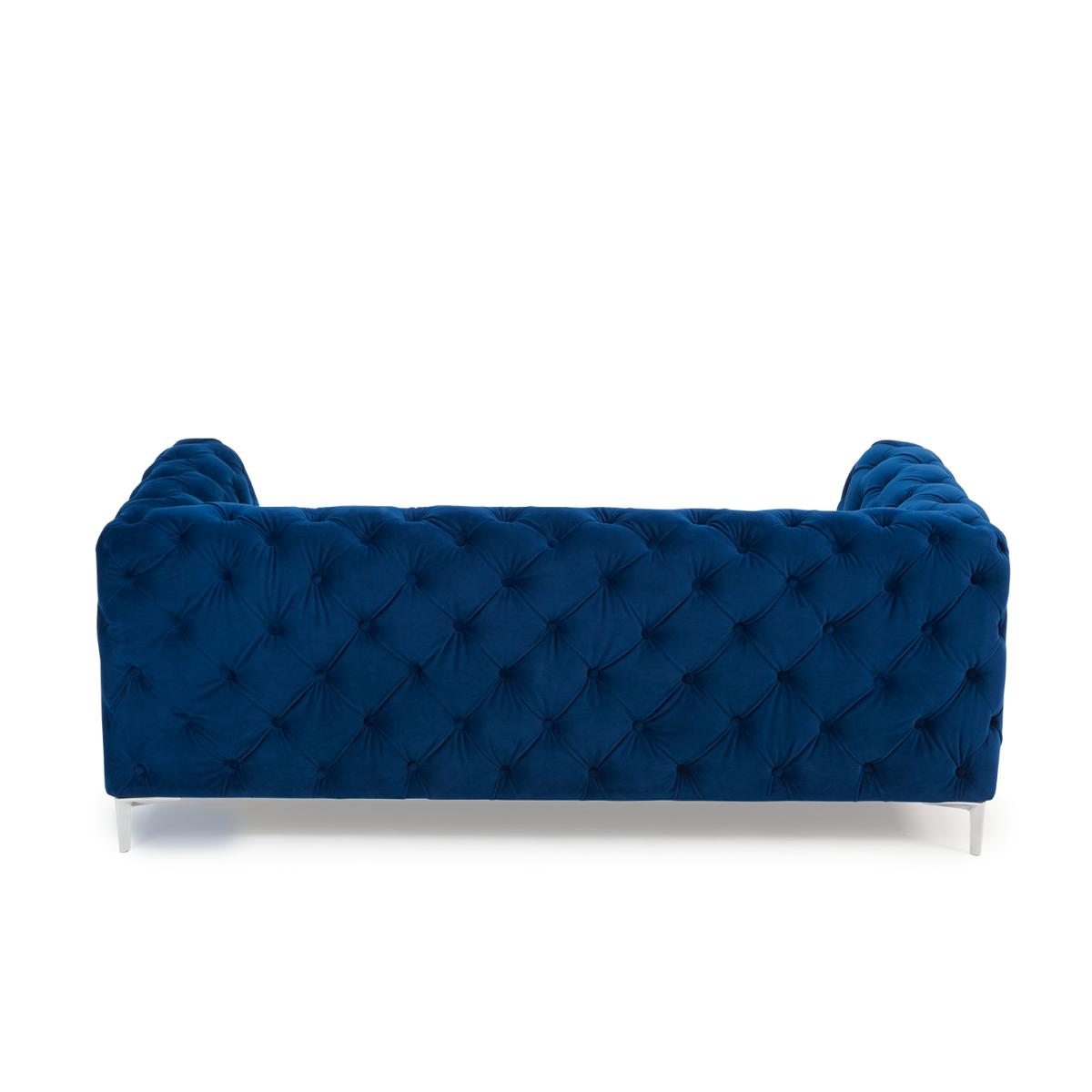 The Alara Blue Velvet 2 Seater Sofa screams luxury. With deep buttoning and cool chrome feet this sofa will suit any living room
