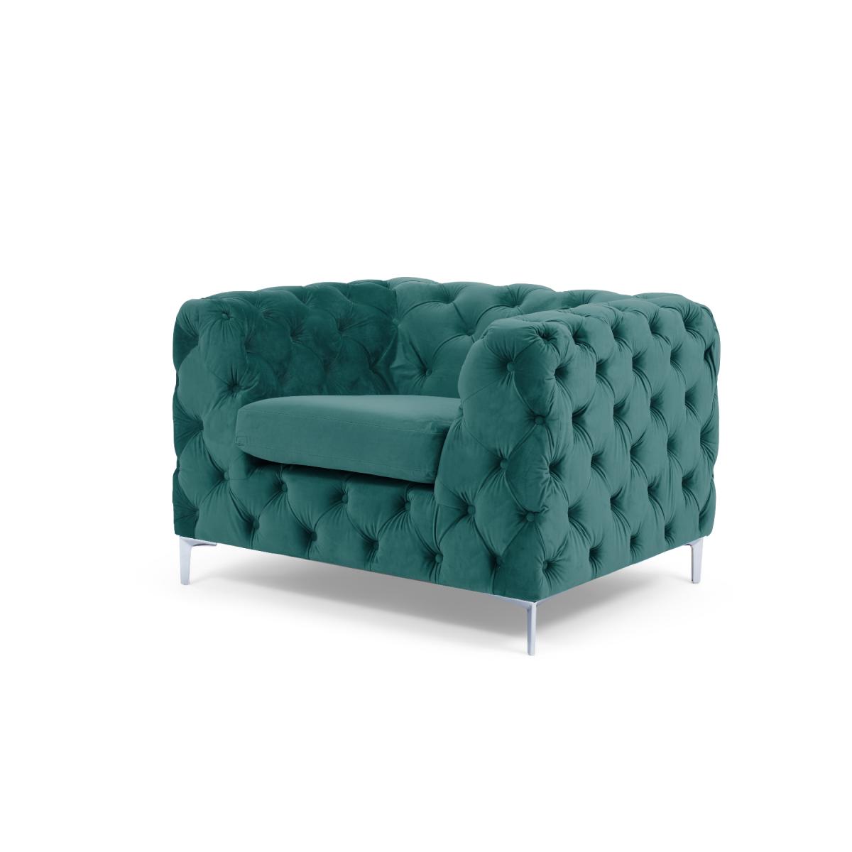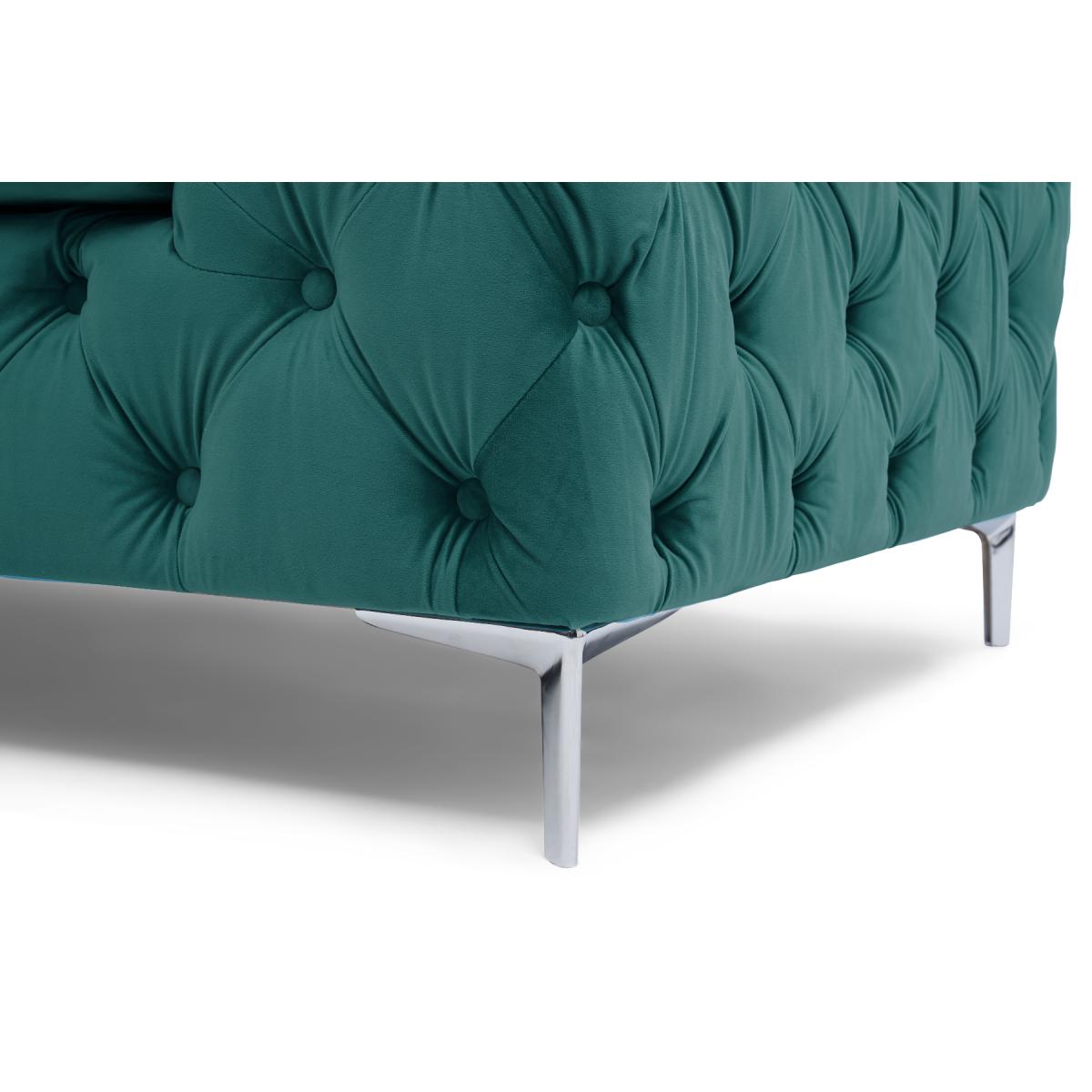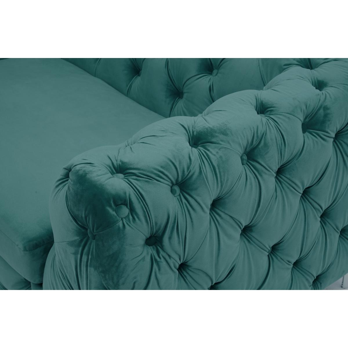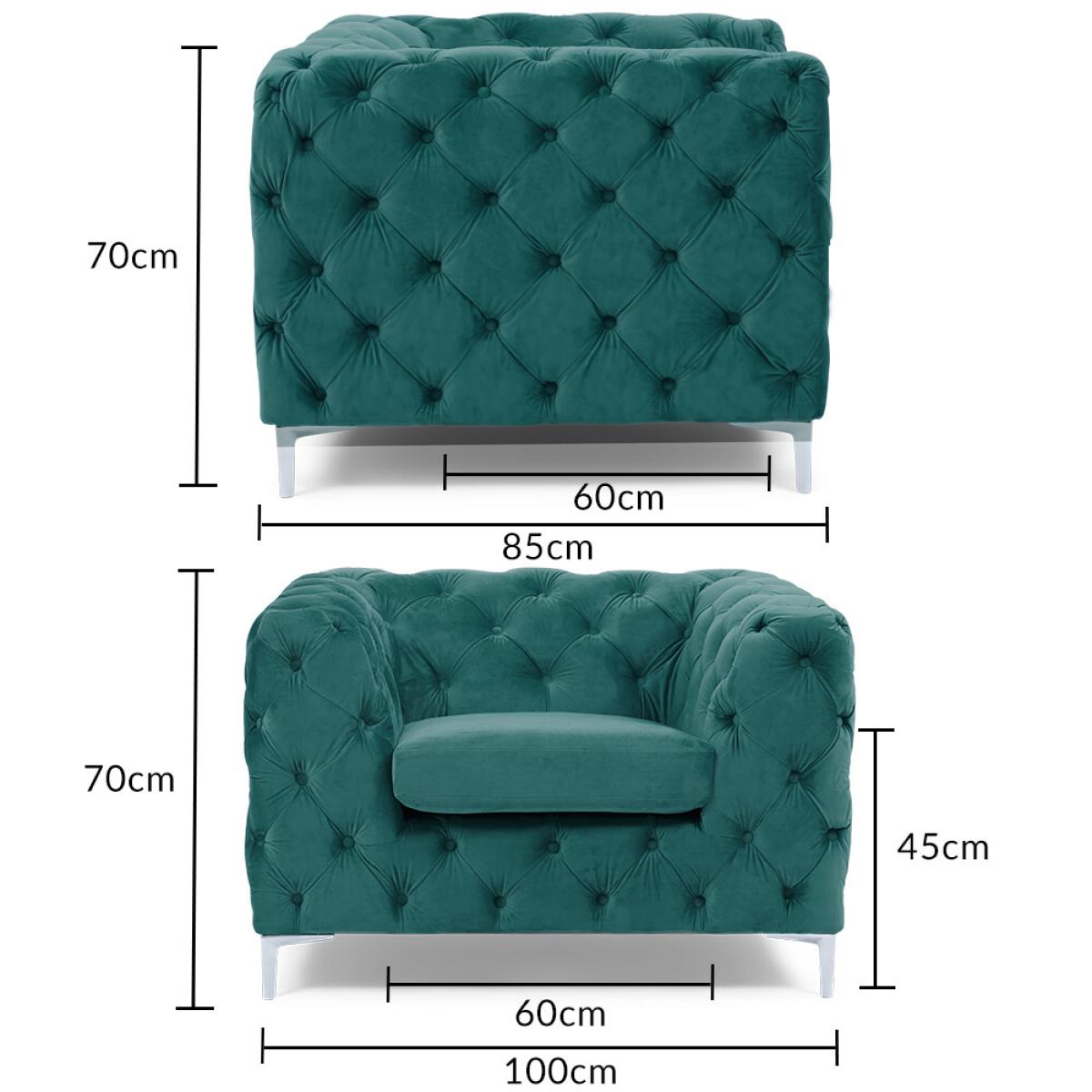 Our Alara Green Velvet Armchair completes a gorgeous living room set. Velvet upholstery and delicate tufting, this sofa is the missing piece