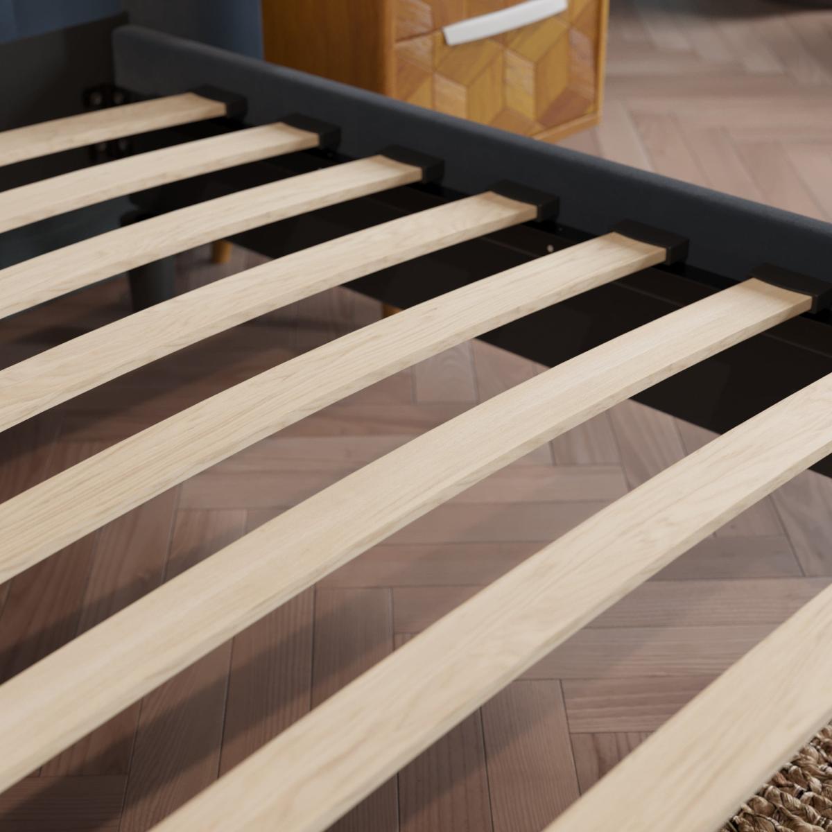 Bring your bedroom to life with this art deco-inspired bed frame. The classic design features soft-touch velvet upholstery and sprung slats for added comfort, while the solid wood legs give it a touch of traditional sophistication.