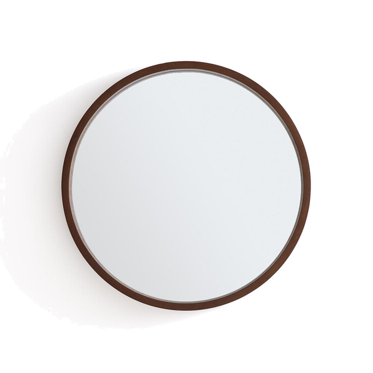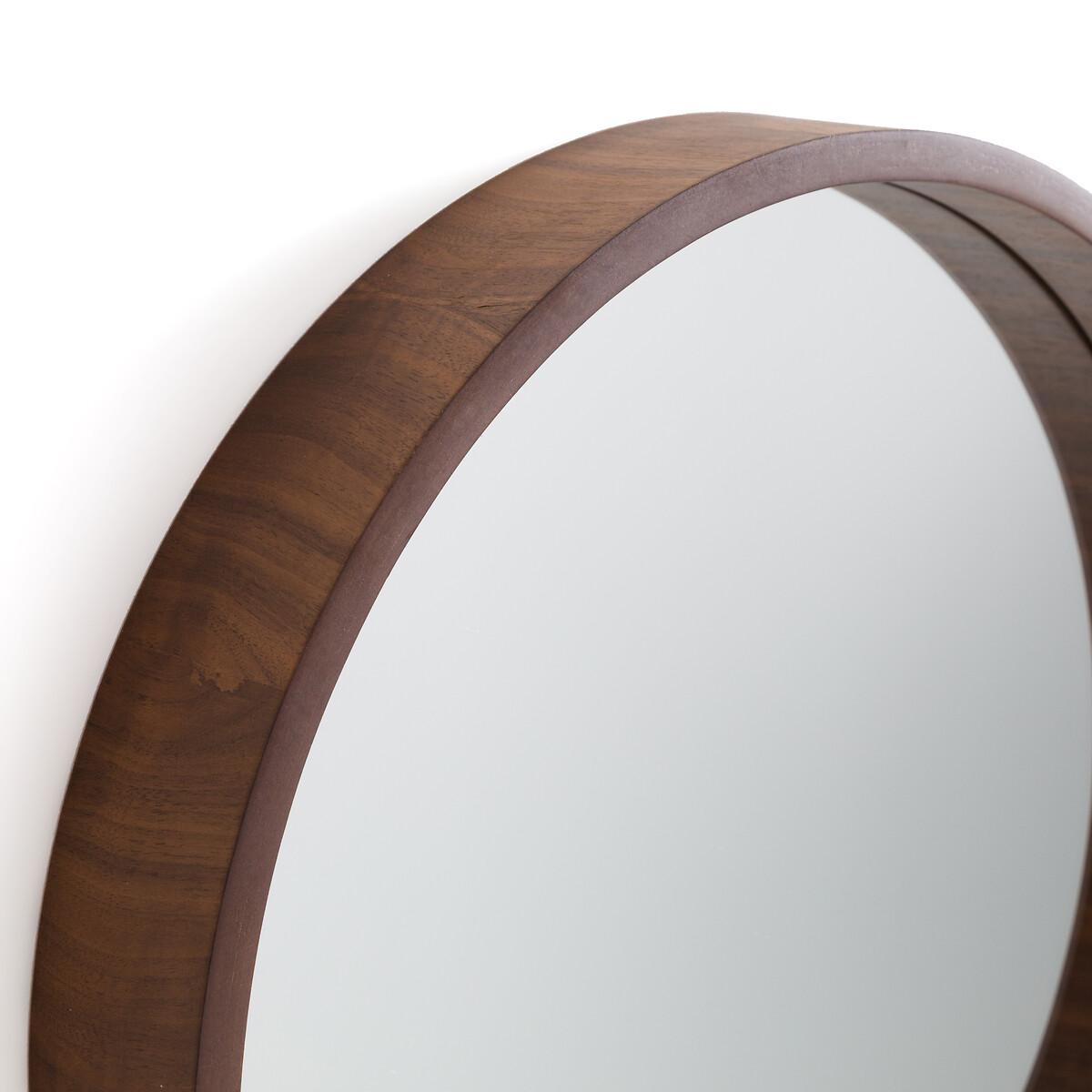 This refined mirror has a vintage spirit and a 1950's feel. Product Details • MDF structure covered with walnut veneer • Wall fixing (screws and plugs not supplied)Dimensions • Diameter: 35cm • Thickness: 5cm. Dimensions and weight of parcel1 parcel • L41.5 x H11.5 x D41.5cm. 2kg.