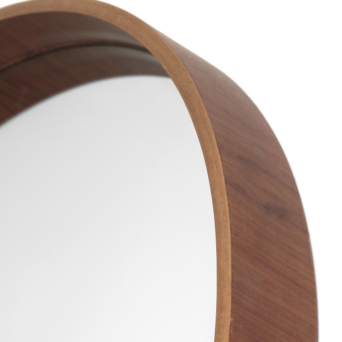 The Alaria round wall mirror. A simple vintage look taking us back to the 1950's. Product Details • MDF round mirror • Walnut veneer frame. FSC® certified wood • 2 wall fasteners (screws and plugs not supplied)Dimensions • Diameter: 60cm • Thickness 5cm • WOOD FROM SUSTAINABLY MANAGED FORESTS. FSC® certified wood comes from forests that are environmentally, socially and economically well managed. Parcel dimensions and weight1 parcel • 67.5 x 67 x 12cm. 5.7kg