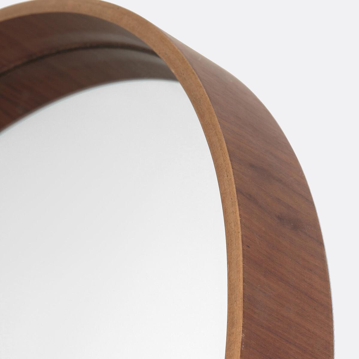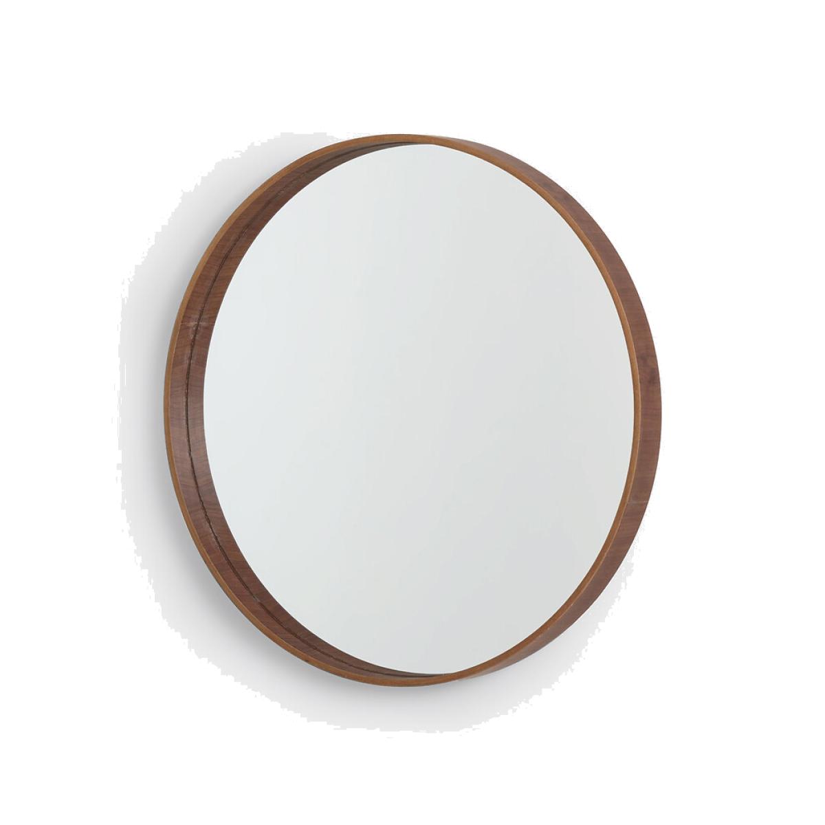 The Alaria round wall mirror. A simple vintage look taking us back to the 1950's. Product Details • MDF round mirror • Walnut veneer frame. FSC® certified wood • 2 wall fasteners (screws and plugs not supplied)Dimensions • Diameter: 60cm • Thickness 5cm • WOOD FROM SUSTAINABLY MANAGED FORESTS. FSC® certified wood comes from forests that are environmentally, socially and economically well managed. Parcel dimensions and weight1 parcel • 67.5 x 67 x 12cm. 5.7kg