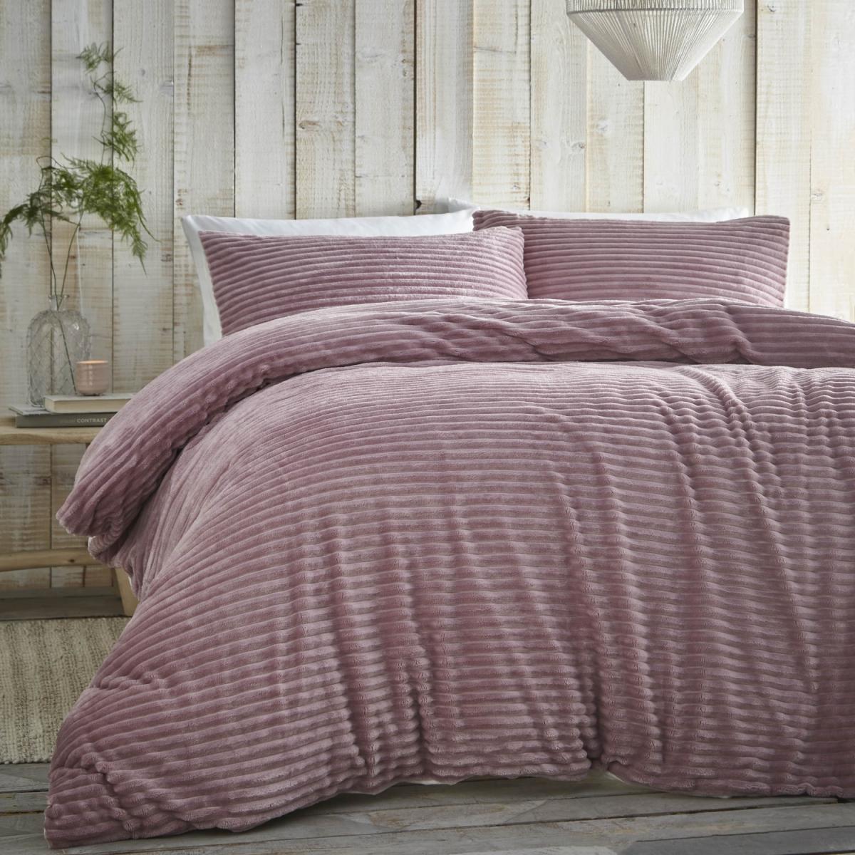 The Alaska range introduces the gorgeously soft, ribbed fleecy duvet sets. They are designed to hold warmth and feel indulgently comfortable on those dark, cold winter nights. Available in a delicate blush pink or a beautiful silver.