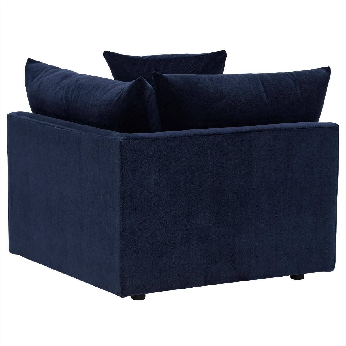 I love the Alaska corner box sofa because of its versatile deep navy hue, which works beautifully in both classic and contemporary interiors. Its plush velvet fabric adds a touch of luxury without feeling overly formal, making it a great choice for relaxed family spaces or more polished living rooms. Stylistically, it pairs well with neutral tones or pops of colour through cushions and accessories, allowing for flexible decorating options. Practical tips include layering with textured cushions or throws for added comfort, while placing it in a corner maximises space and creates an inviting, cosy nook. Its understated elegance makes it an adaptable piece that can effortlessly become the focal point or complement a more eclectic setting.