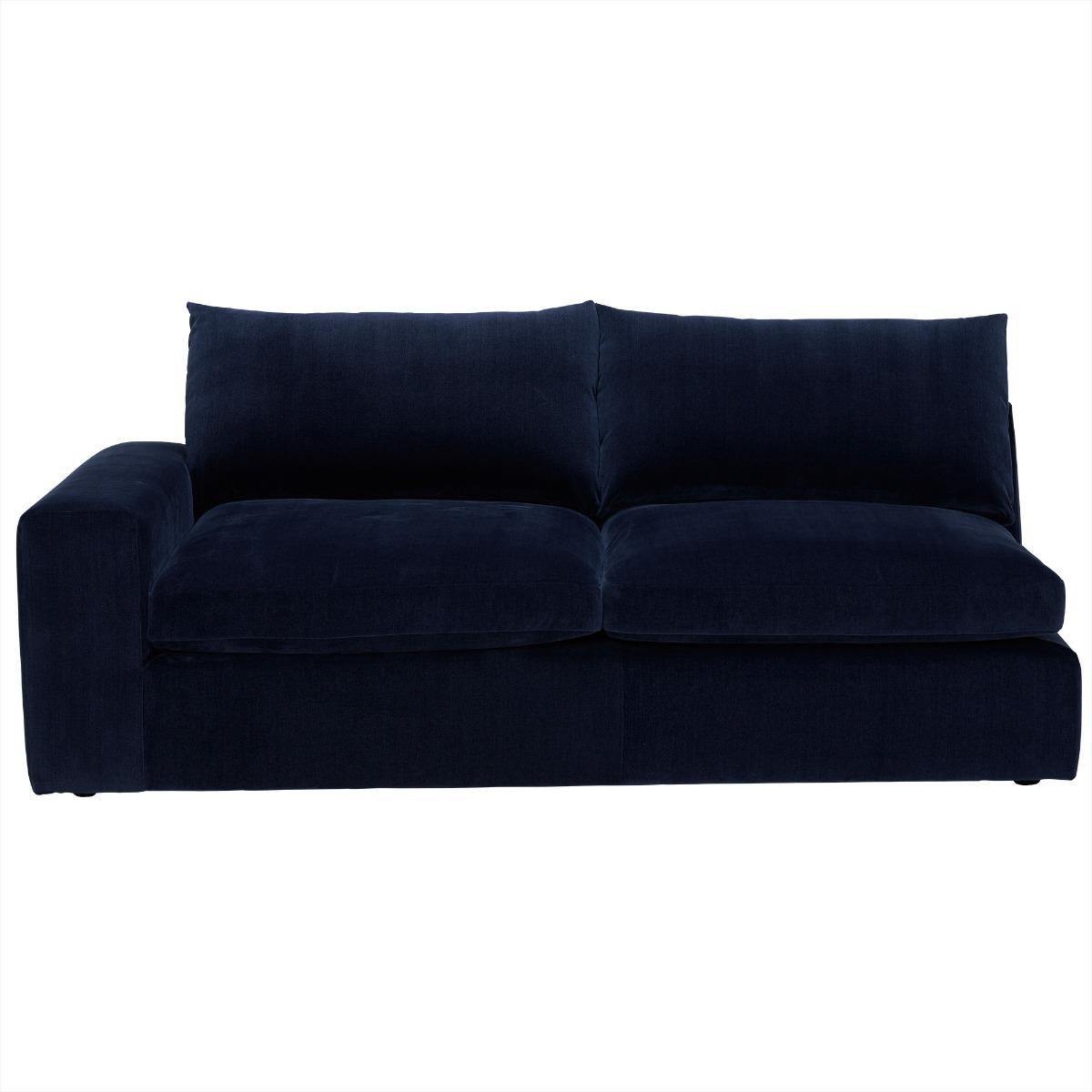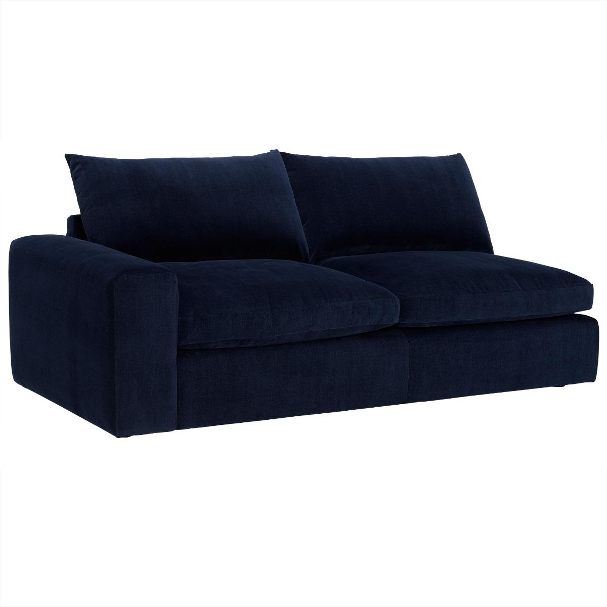 I love this two-seater sofa for its sleek, contemporary design and versatile fabric, making it a great focal point in various interiors. Its left-hand facing arm makes it ideal for creating cosy corner arrangements or pairing with a complementary armchair for an inviting conversation area. The deep navy hue is perfect for adding depth and sophistication, especially in neutral or muted schemes, but it can also energise a more eclectic space when layered with textured cushions and throws. Practical styling tips include adding contrasting cushions for colour pops or metallic accents, and dressing it with a chic throw to soften its lines and make it more inviting. This piece works well in modern, Scandinavian, or luxe interiors but can also be dressed down for more casual, relaxed settings.