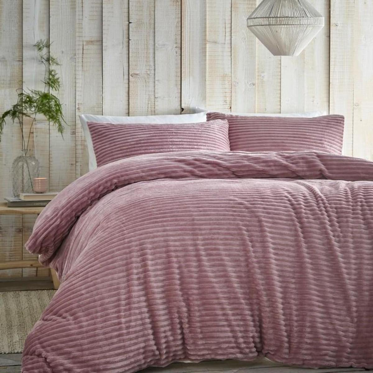 Alaska Ribbed Fleece Duvet Cover Set - Pink