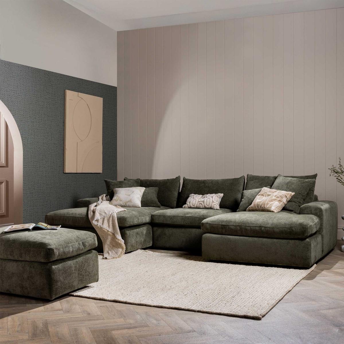 I love the Alaska U-shaped corner sofa for its rich green velvet upholstery, which adds a touch of luxury and depth to any interior. It works particularly well in contemporary or eclectic schemes, where the bold colour can be paired with patterned cushions or metallic accents for a modern look. Practically, its generous shape makes it perfect for family rooms or open-plan living spaces, offering ample seating without compromising style. To enhance its appeal, consider accessorising with textured throws and a mix of cushions to create a cosy yet sophisticated vibe. This sofa offers versatility and comfort, making it a statement piece in both neutral and more daring interiors.
