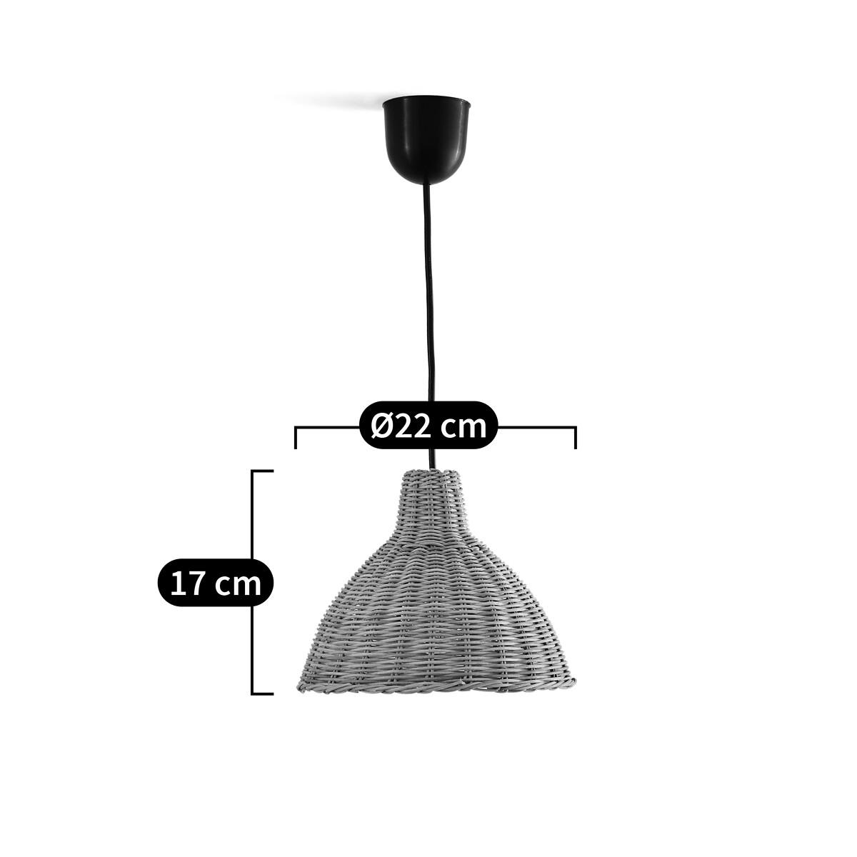 This is Alaya. A rattan pendant light, perfect to decorate your interior with bohemian style. Product Details • Made from rattan • Iron structure covered with epoxy paint • Support for E14 socket (bulb not included) • Non-electrified. Dimensions • Diameter: 22cm • Height: 17cm. Dimensions and weight of parcel1 parcel • L24 x H19 x D24cm. 0.5kg.