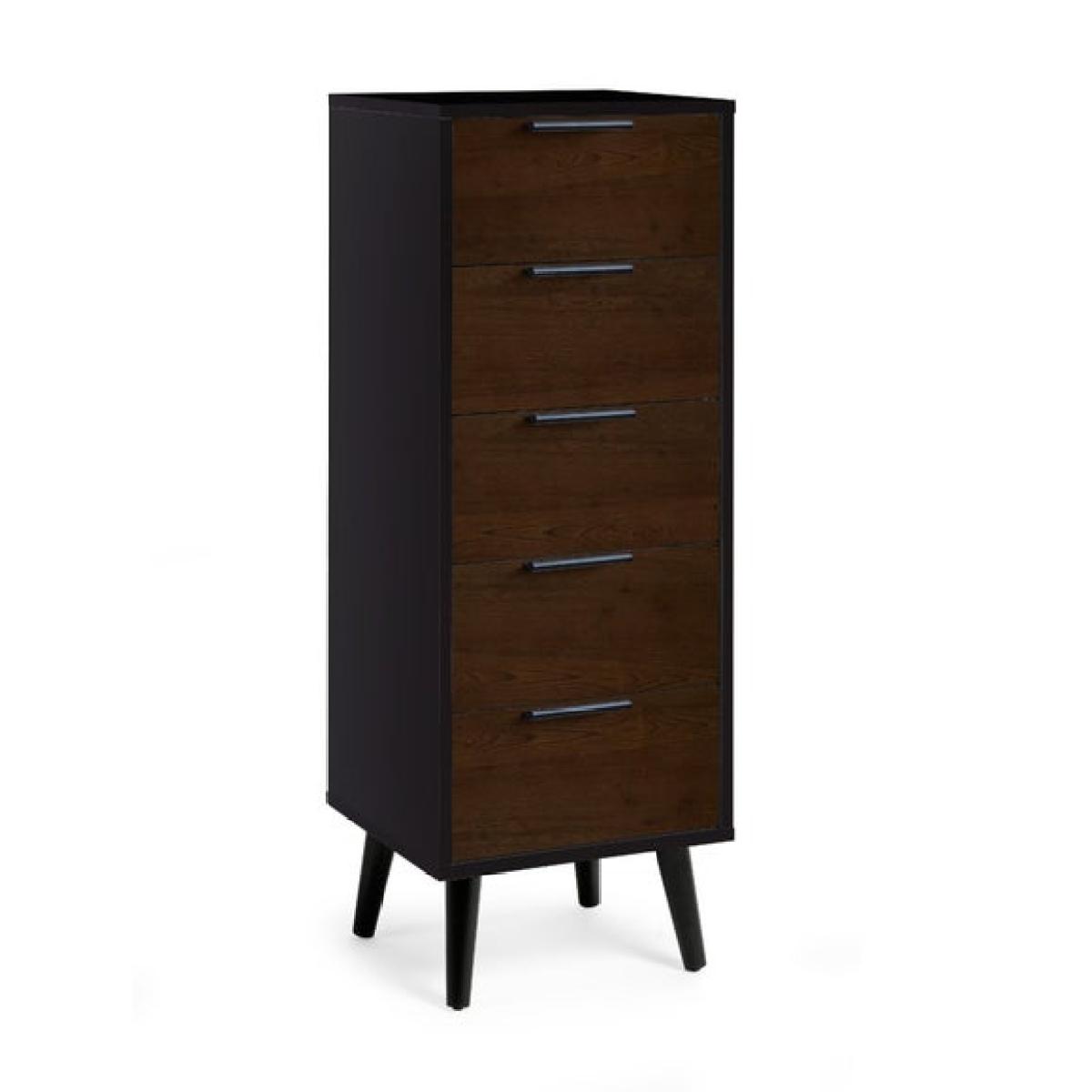 * Modern chest of drawers * Large drawers * Sleek, wooden finish Perfect for rooms where space is limited, this tall chest gives you five drawers for storing clothing and essentials without taking up too much floor space. The slim design makes it easy to position in smaller areas, while the drawers provide plenty of room to keep everything organised.