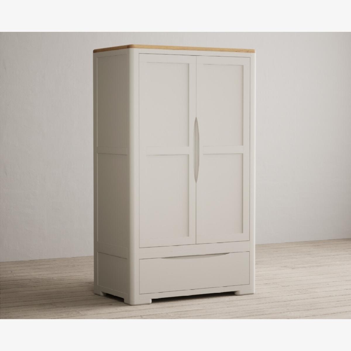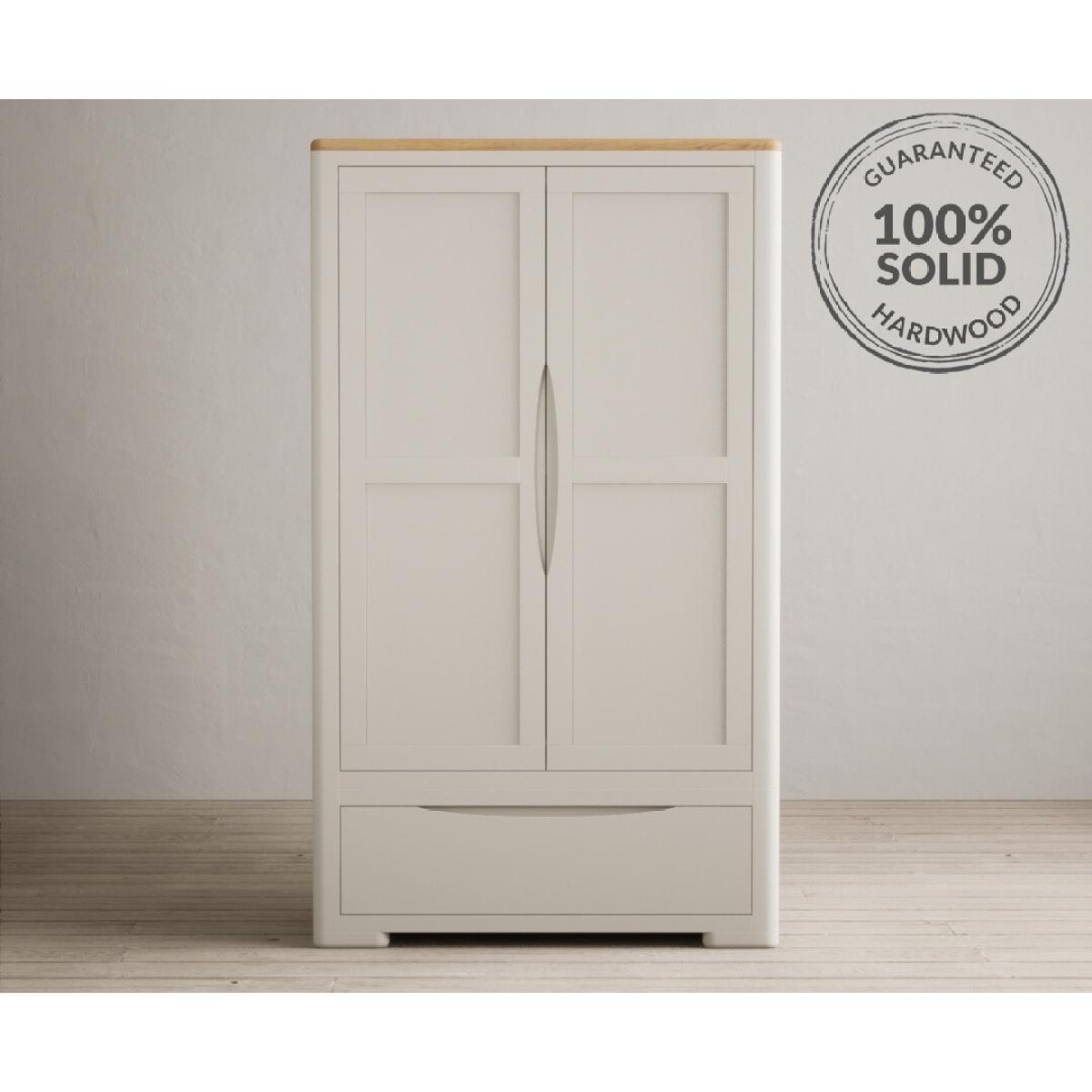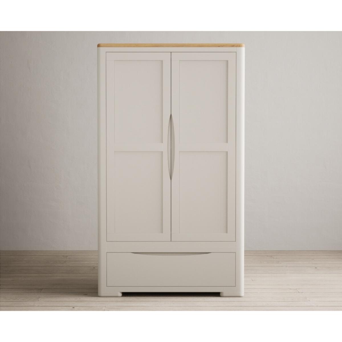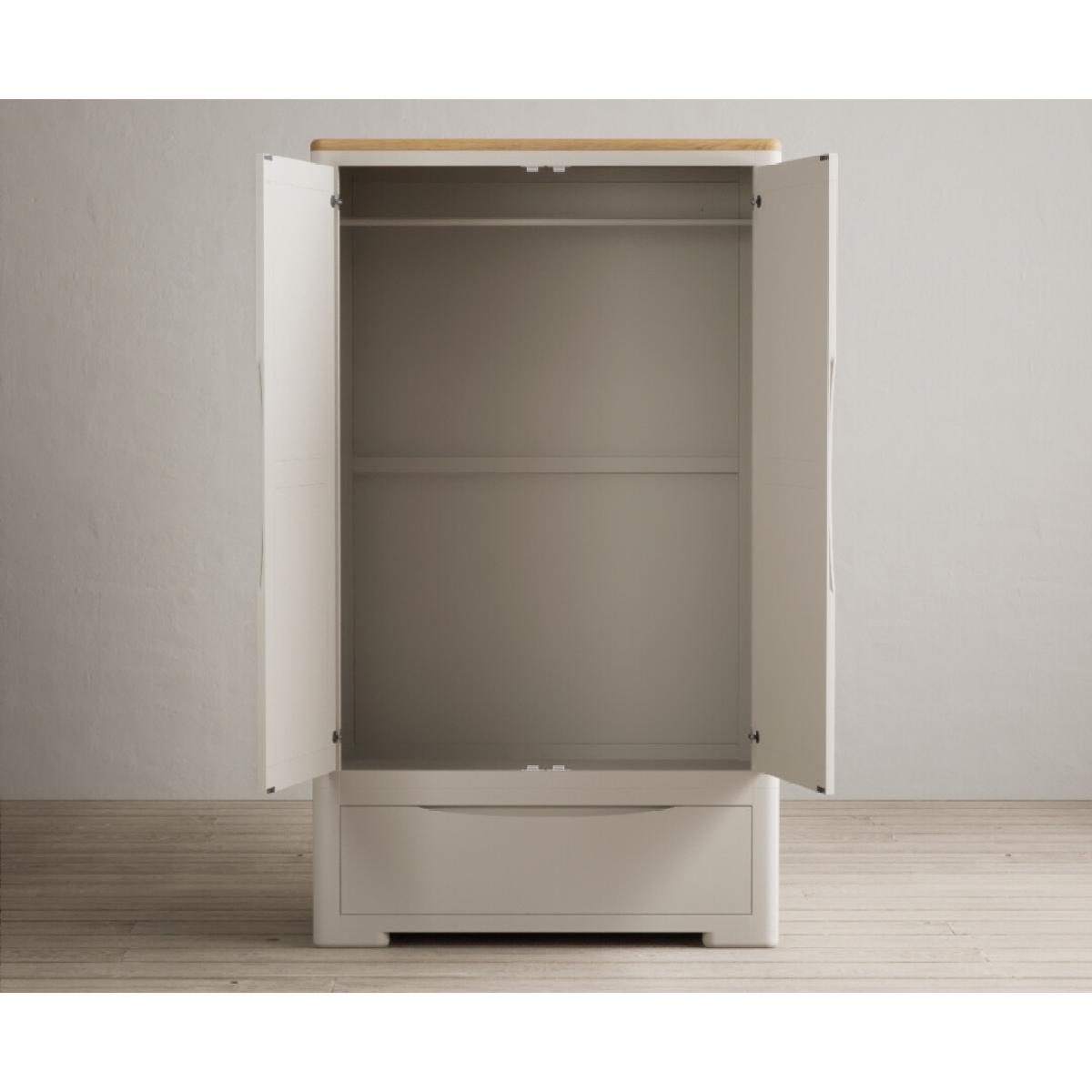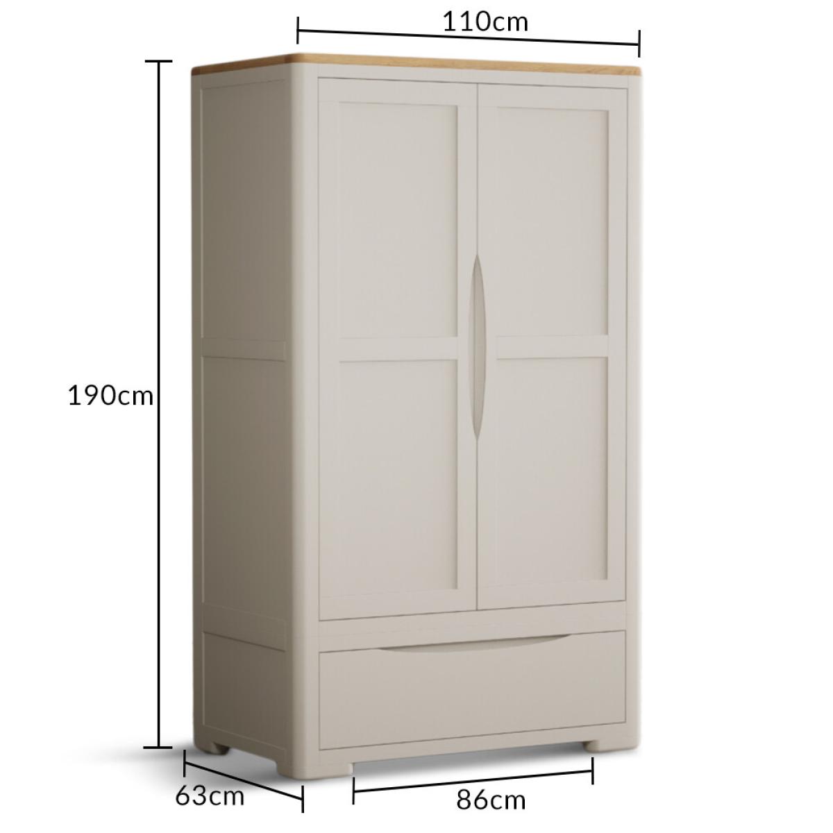 The Alba Oak and Soft White Painted Double Wardrobe is rustic and modern, with two doors and a lower drawer, the all-hanging wardrobe is stylish and practical.