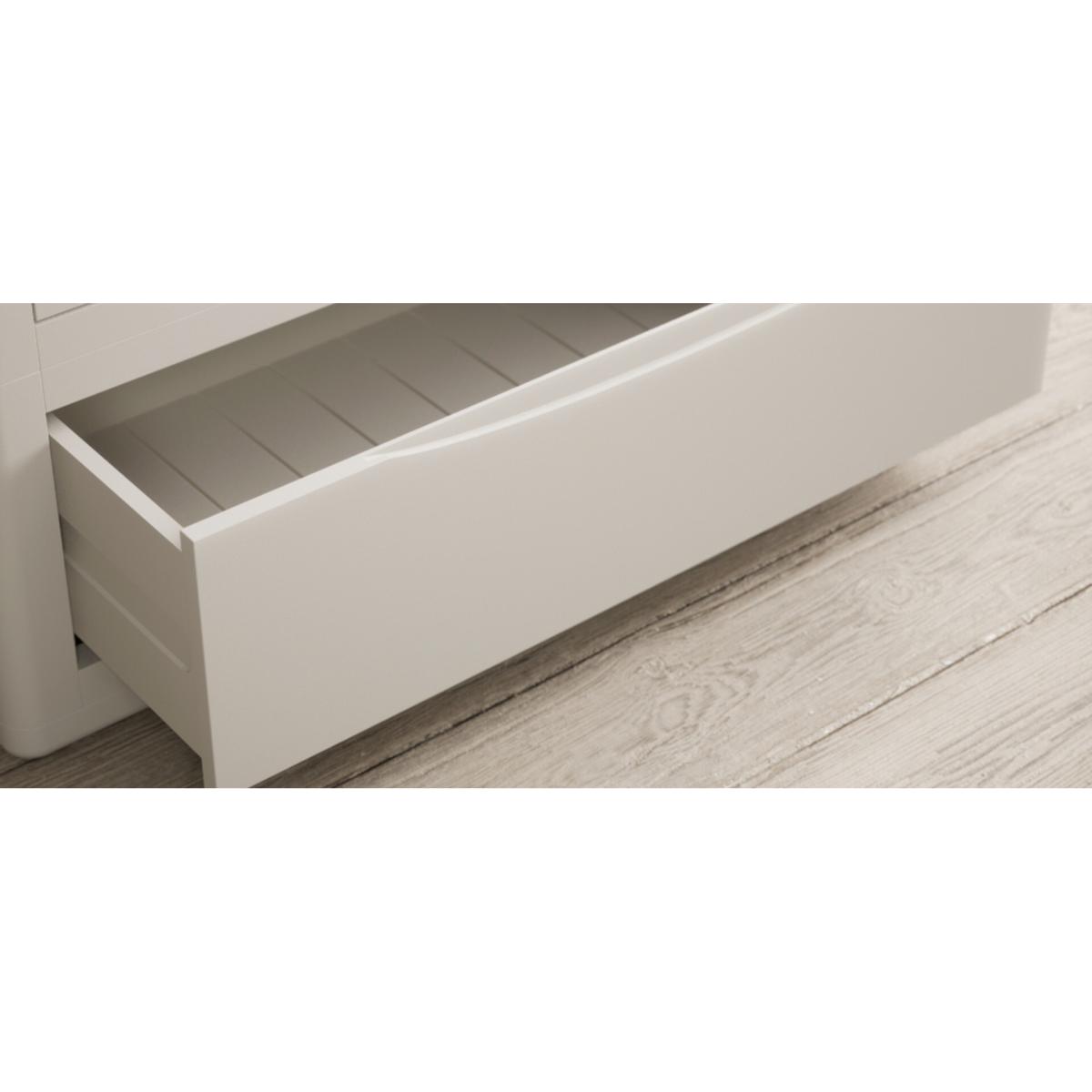I love the Alba wardrobe for its clean panel detail and mix of natural oak and soft white paint - it slots effortlessly into Scandi, modern farmhouse or coastal interiors. The spacious drawer and hanging rail make it easy to organise clothes, while the neutral tones pair well with muted wall colours or a subtle wallpaper. For styling, keep the top clear except for a single tray holding a small plant and a ceramic pot to avoid clutter. Place a textured rug underneath and add a woven basket beside it for extra linen storage. Matching white bedside tables or oak wall shelves will tie the look together.