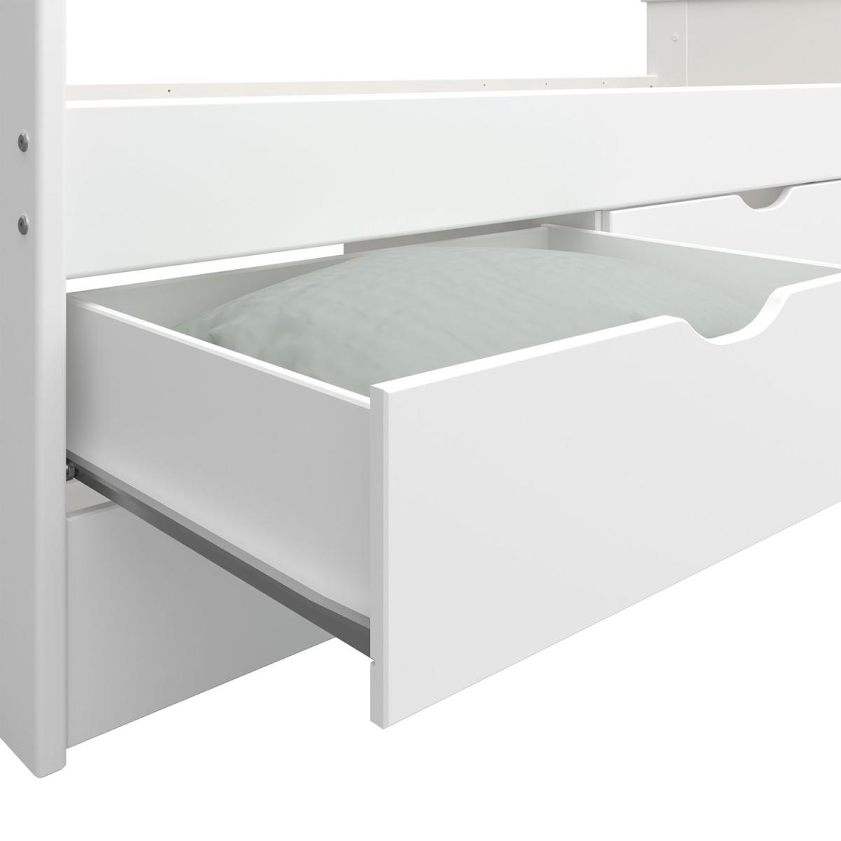 The Alba Single Bed with 6 Drawers from Steens has been made from sturdy, durable MDF to withstand everyday use. The simple white finish matches any child's room for your convenience and it also includes a 6 drawer under-bed unit offering a space-saving solution and ample storage. Great for use your child's room or in a spare room, this will be a wonderful addition to your home.