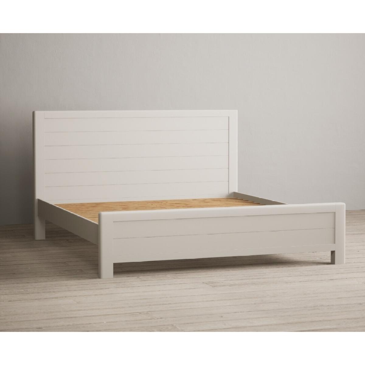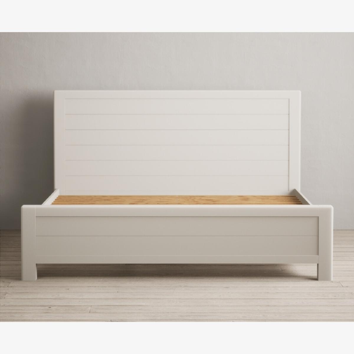 The Alba Soft White Painted King Size Bed is a solid oak bed that features a high headboard and footboard and minimalist design to suit any bedroom.