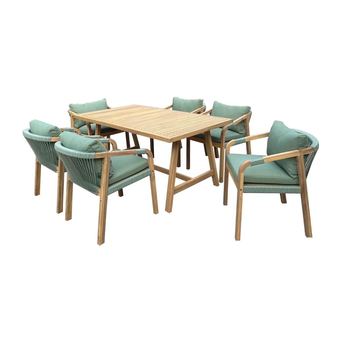 The sleek design and comfortable seating make it perfect for al fresco dining, gatherings, or casual outdoor meals. Whether placed on your patio, garden, or balcony, the Albany 6 Seat Dining Collection adds a touch of sophistication to any outdoor space. Albany 6 Seat Dining Collection - Green