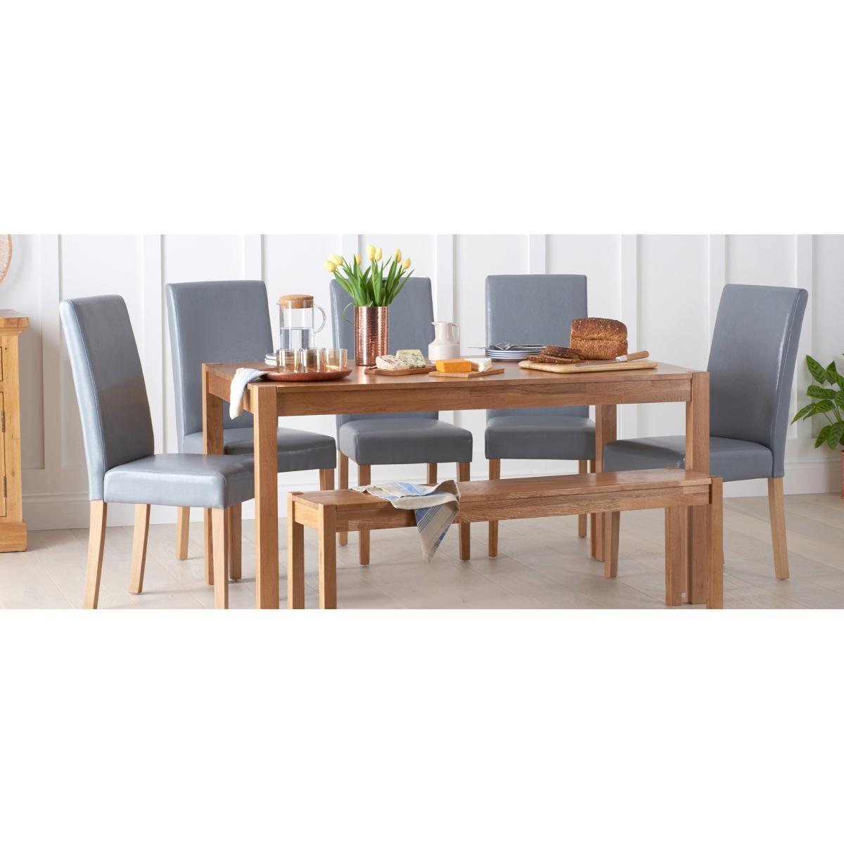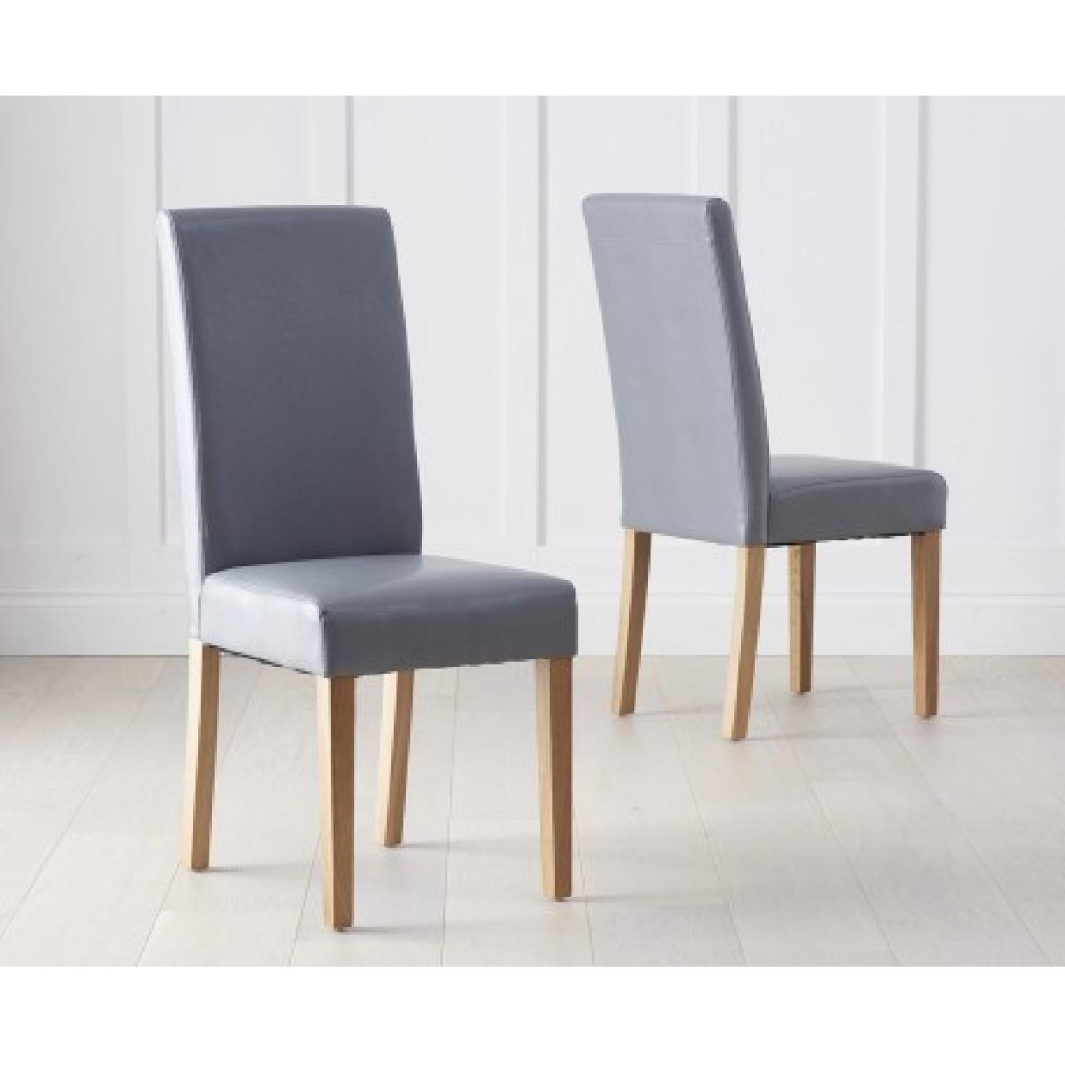 The Albany Grey Dining Chairs are a chic addition to any dining area. Designed to effortlessly complement any oak or hardwood dining table, the stylish dining chairs feature smooth grey faux leather upholstery and are complete with resilient solid oak legs. Also available in Cream, Black, Red or Brown