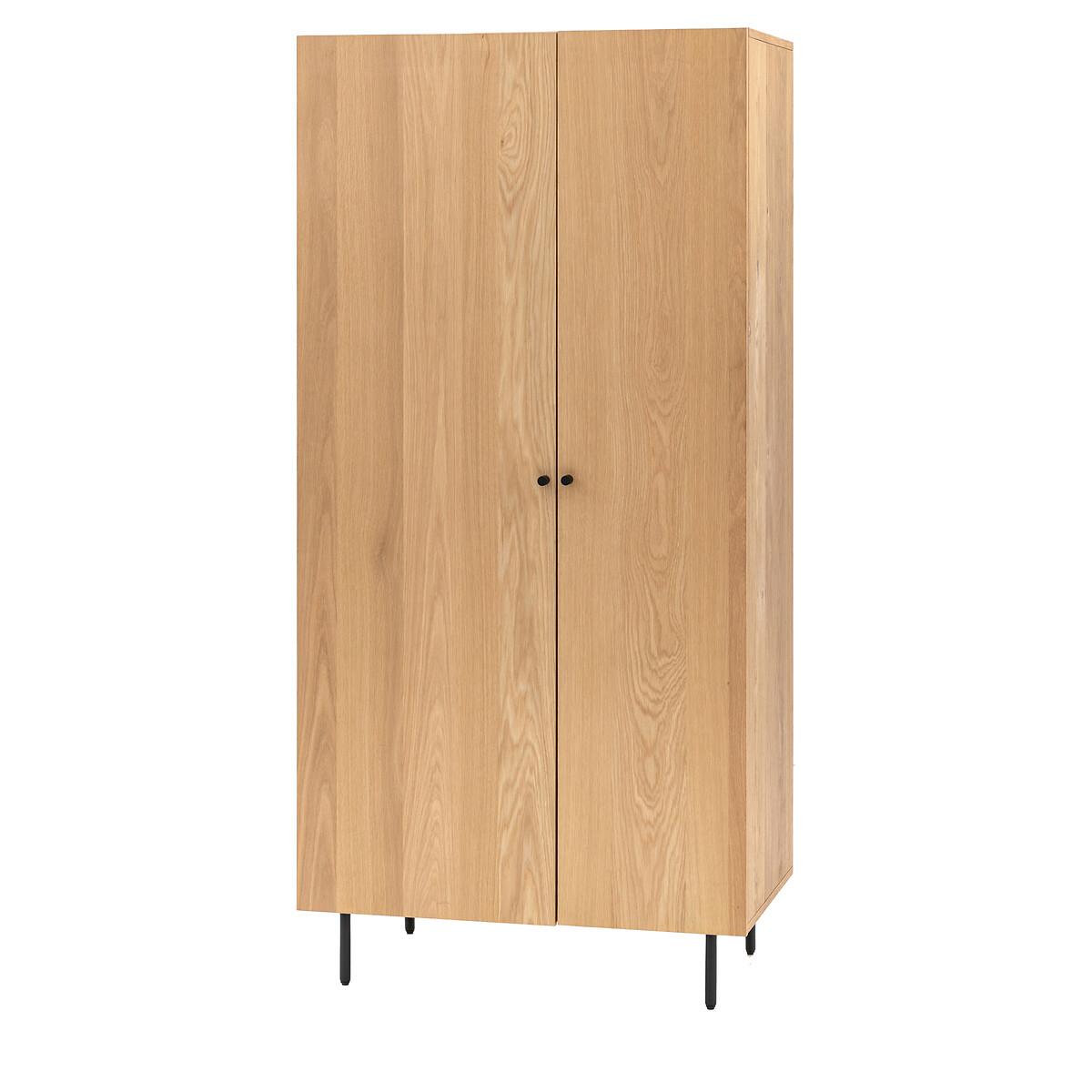 This contemporary wardrobe is carefully crafted using the finest oak. Unique random knots and natural texture paired with black metal hardware creates an industrial rustic style. A sturdy rail provides hanging space and a lower storage compartment is ideal for storing shoes and bags. Product details • Oak veneer • Slim matte metal legs and underframe • Round black minimalist knob • One internal hanging rail • Lower shelf compartment • Anti topple kit included • Full assembly required. Product Composition - MDF 60% / Iron 20% / MDF Melamine 20% Product Dimensions - 85 cm x52 cm x178 cm , Weight - 71 KGLeg height - 15 cm Clearance to floor - 15 cm Internal cupboard size - W81 x D50 x H159.4 cm. Internal shelf compartment height - 31 cm Package Dimensions - 181 cm x 57 cm x 20 cm, Weight 78 kg. This product will be dispatched by one of our trusted suppliers. You’ll be contacted by their selected courier about your delivery. Please note: this product cannot be delivered to all Offshore Islands, Northern Ireland or Republic of Ireland. GALLE01