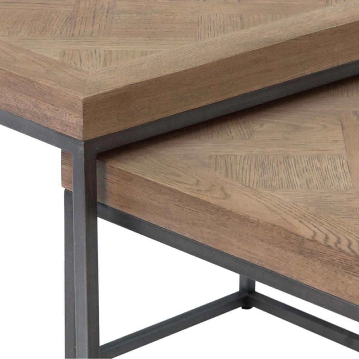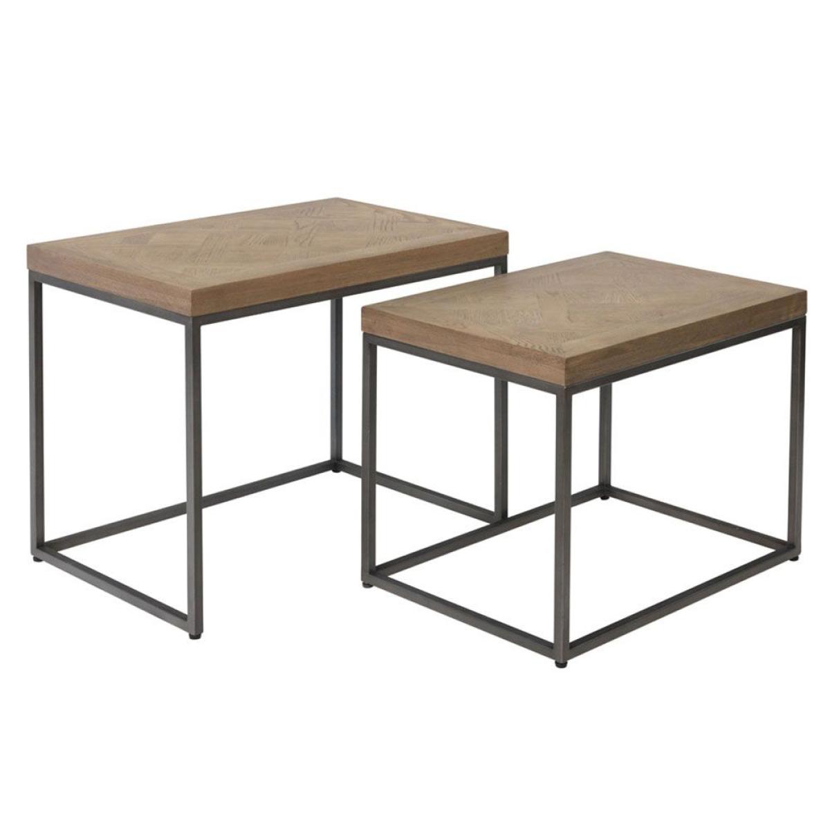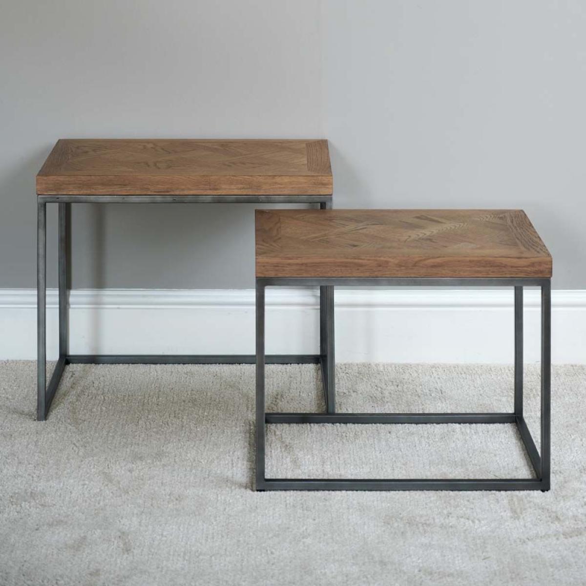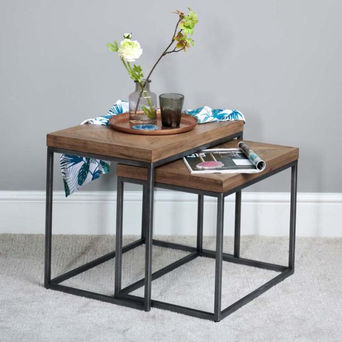 The Albany Nest of Tables is a great solution for additional surface space in the living room that also tucks away neatly when not required. One table slides snuggly below the other. The nest of tables is part of the Albany Living amp; Dining Collection and features intracate interwoven wood panelling style veneer with contrasting grains. The nest features geometric industrial style metal legs. Contrasting grain wood style veneer. Metal industrial style legs. Nesting so one table slides below the other. Dimensions while nested W60cm x D40cm x H50cm Simple self assembly
